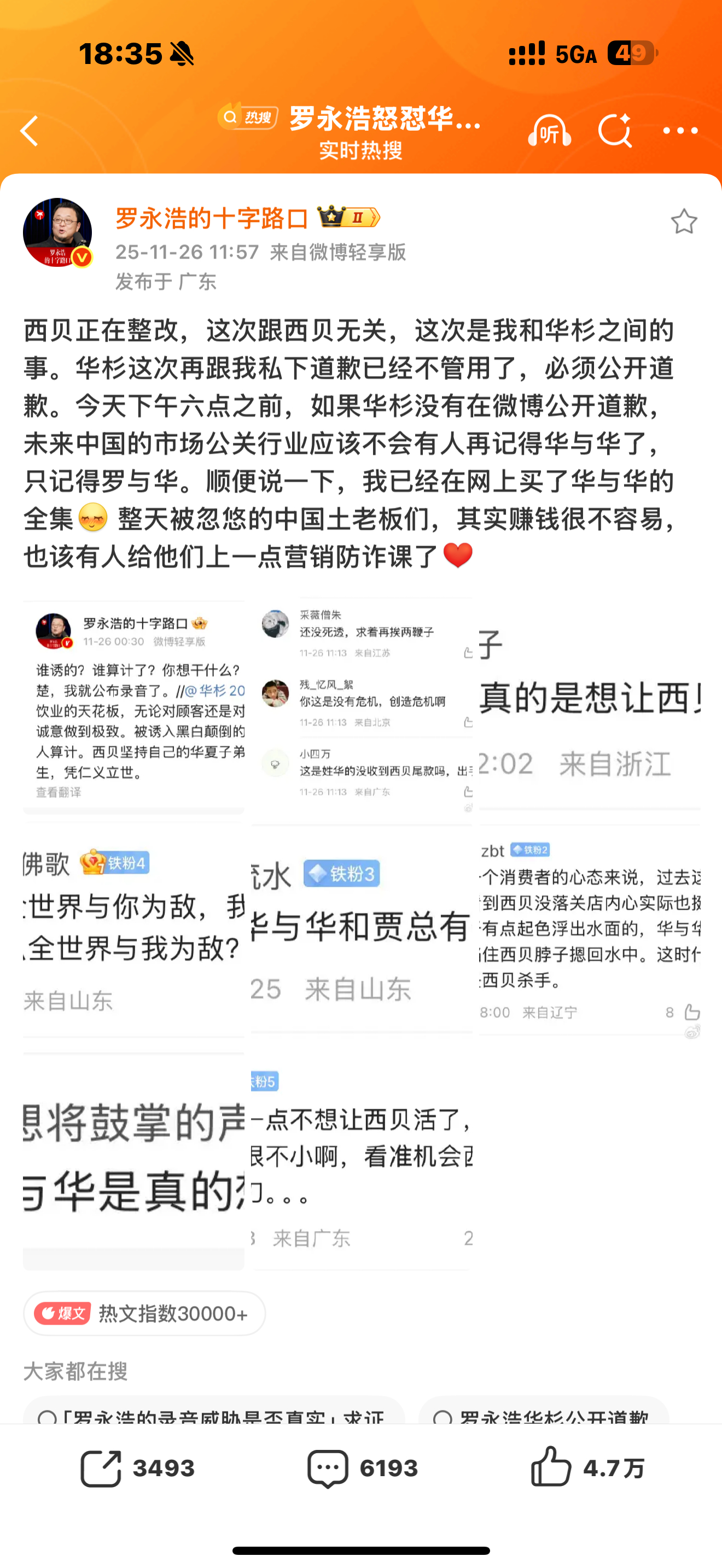 罗永浩 录音罗永浩 华杉 都过了6点半了,龙哥咋还没信儿?看龙哥在广东,是不是要先出境再公布啊