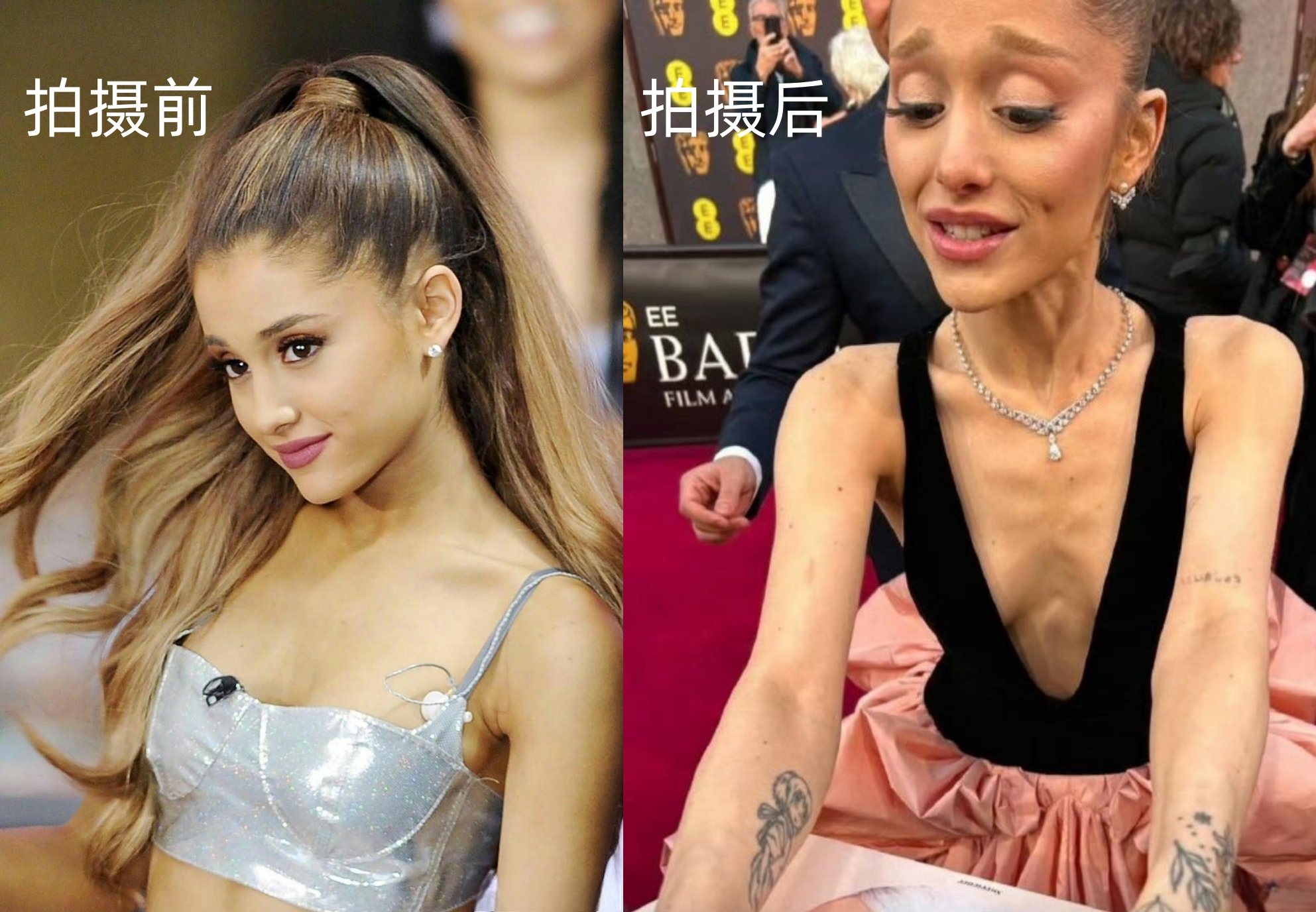 有网友对比了女演员们“拍前”和“拍后”的对比图。 发现所有人都变得瘦骨嶙峋。