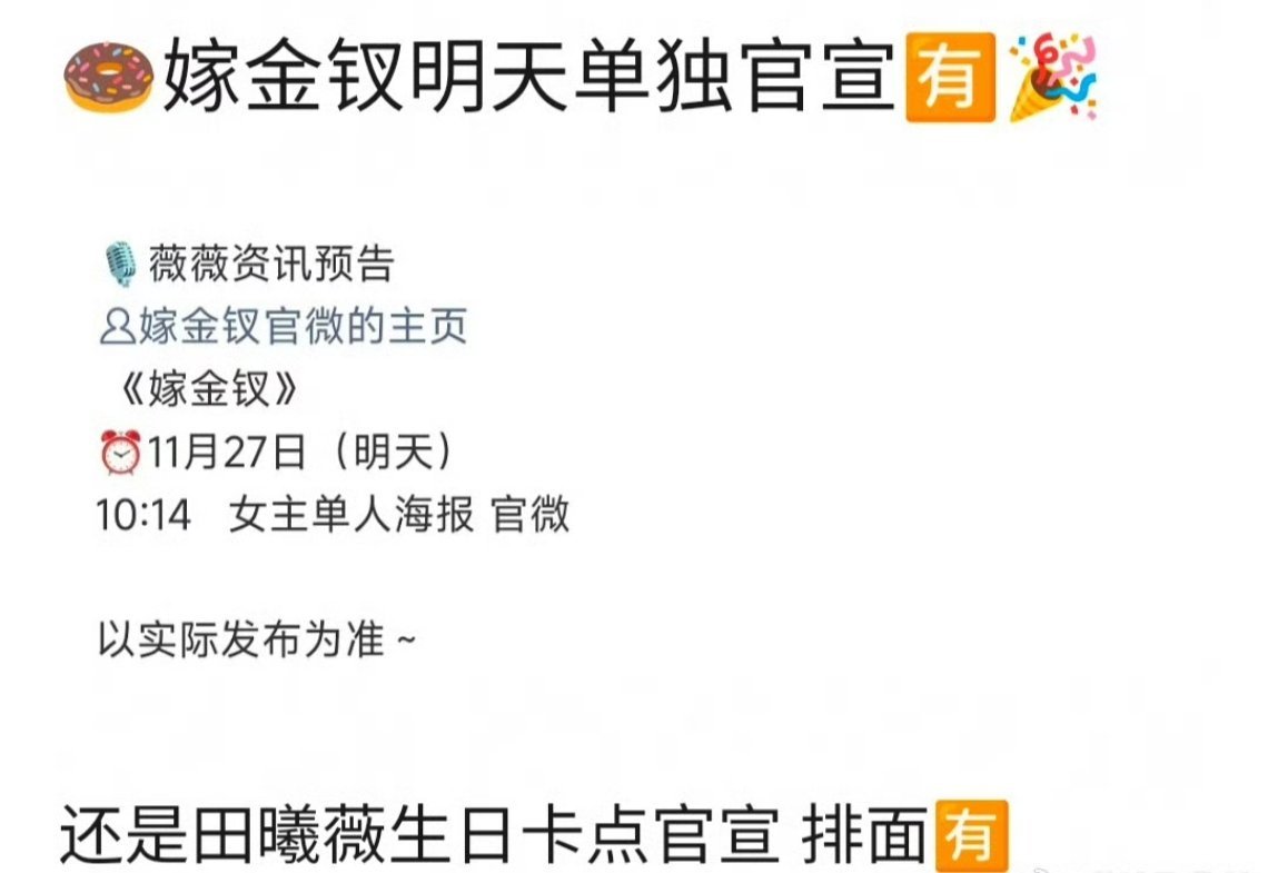 田曦薇田曦薇《嫁金钗》明天单独官宣,卡点生日,排面🈶