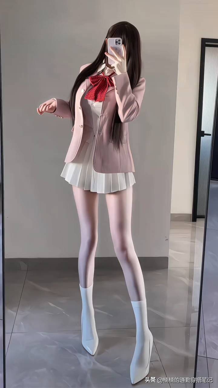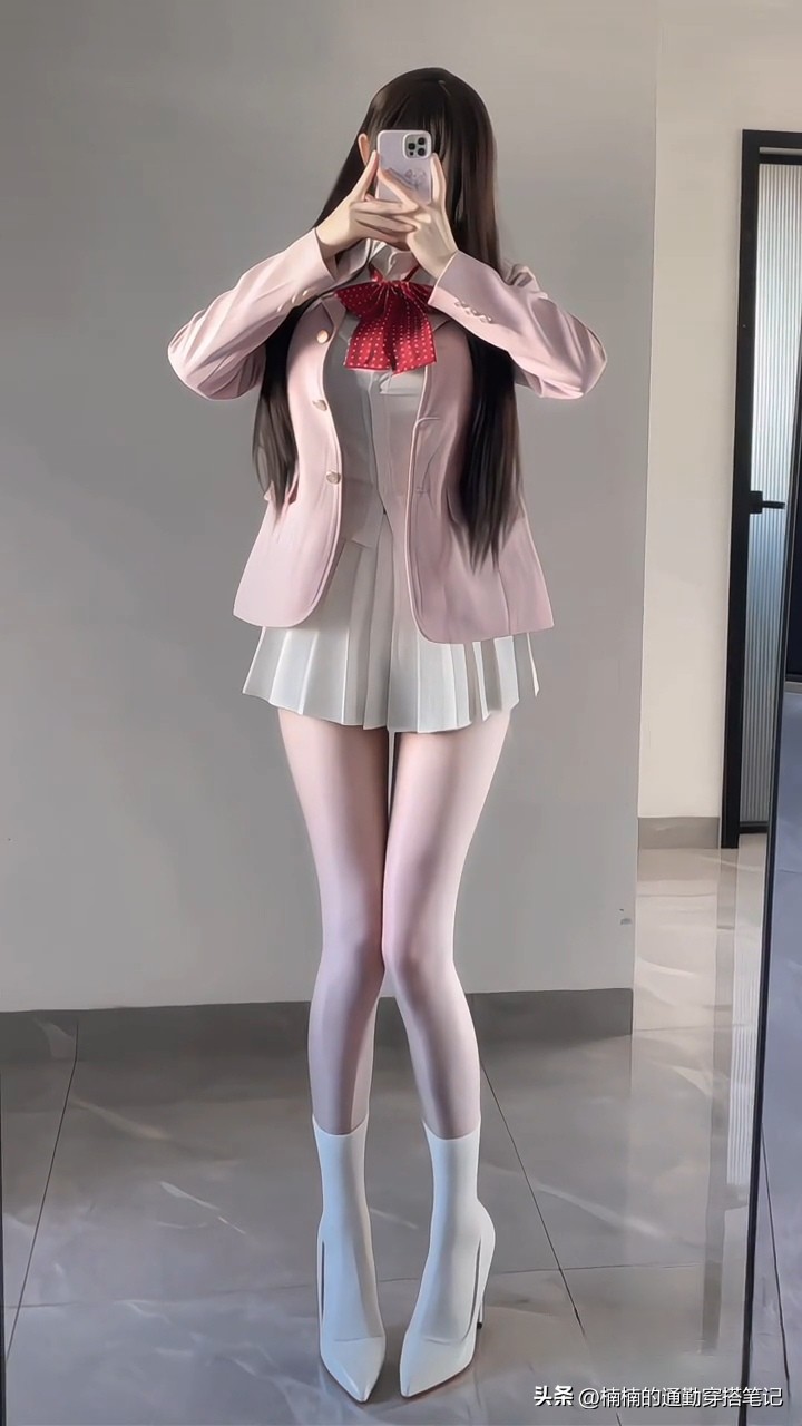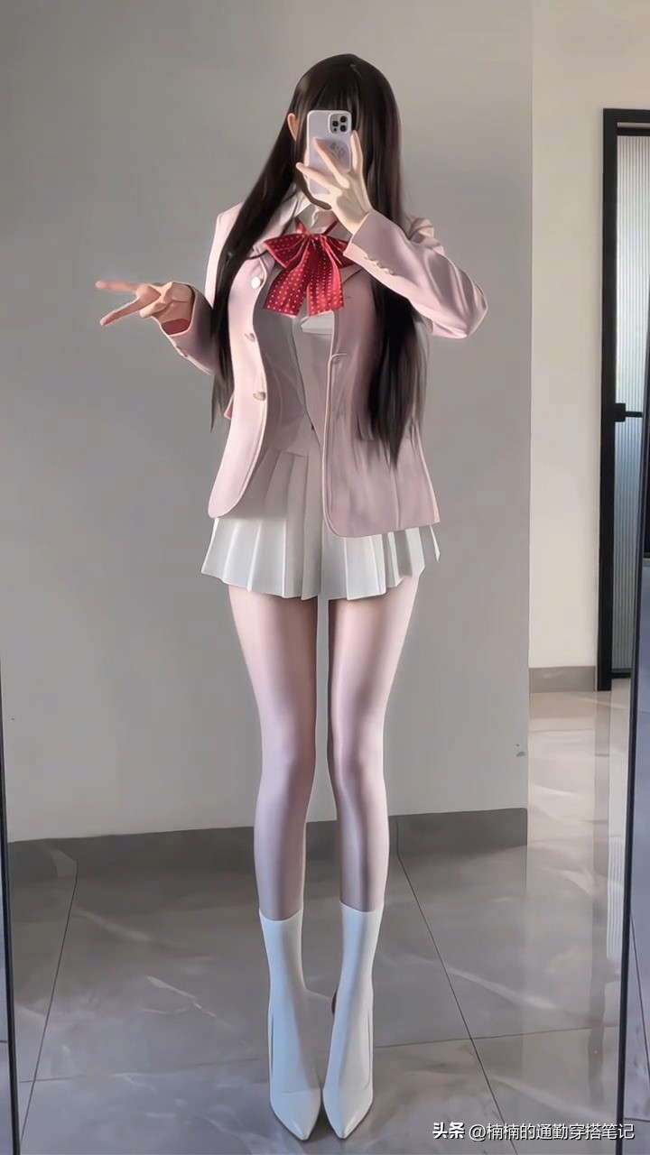 这套粉白学院风完美揉合了“甜辣元气感”——浅粉西装裹藏着软乎乎的温柔,红波点领结彰显着跳脱的活泼,白百褶裙摇曳着少女心,浅粉丝袜与白靴更增添了几分甜酷气场。整体宛如“揣着糖果的元气学姐”,走动间裙摆带着细碎的灵动。无论是漫展还是约会穿着,都甜而不腻,将可爱与精致隐匿于细节之中学院风穿搭 甜辣风 粉系少女感穿搭 甜美学院风衬衫