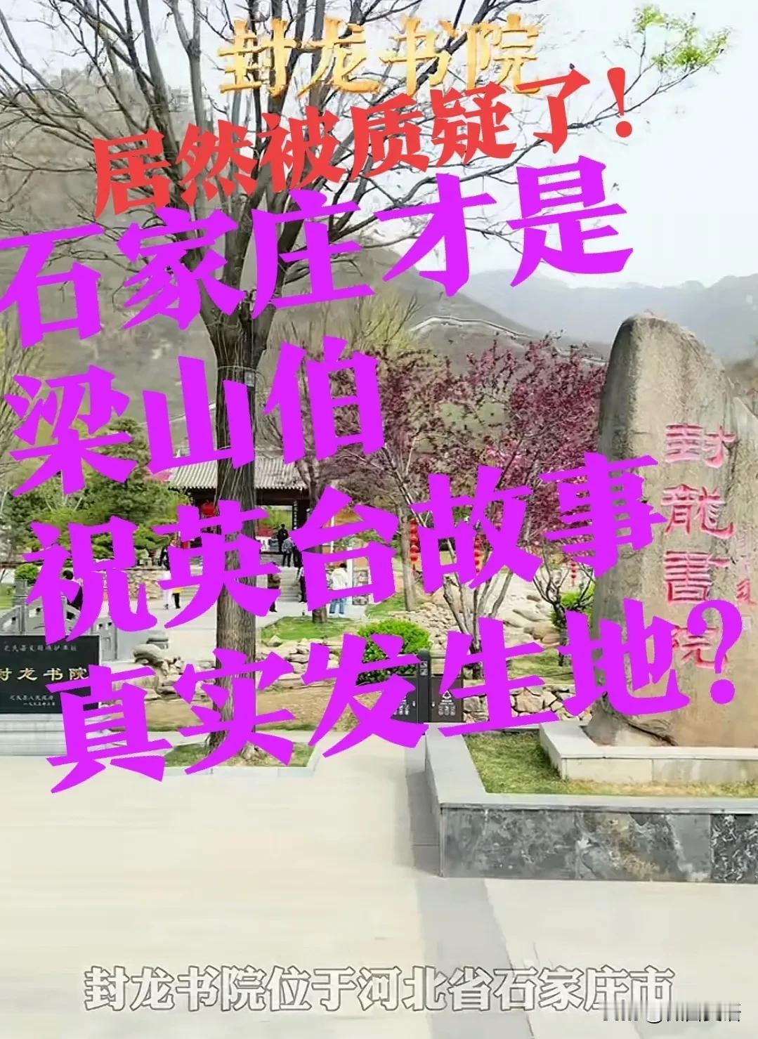 【石家庄,“梁祝”故事的发源地】这两天,百万粉丝大网红,导游小黑诸鸣评价“梁祝”是不是发生在石家庄的视频火了!小黑渚鸣还说评价“苏东坡老家”是不是石家庄栾城的? 今天我们单说“梁山伯祝英台”与石家庄元氏县的封龙书院的故事! 石家庄市元氏县志有记载,明代崇祯版《元氏县志》记载梁山伯墓在南佐村西北一角。县志在“陵墓”、“古迹”、“桥·渡”三部分中分别提到梁山伯墓、吴桥古冢和吴桥。这三个地方都和梁祝传说有紧密关系!这些都是有网友考证过的! 梁山伯在封龙书院就读,祝英台男扮女装求学,与梁山伯成为知己,私定终身,后被家人许配马文才,梁山伯相思而死,祝英台撞墓碑而亡,双双化蝶。白朴创作梁山伯与祝英台剧本,后在真定(石家庄正定)公演未引起反响,又在金陵公演引起共鸣,剧目改名为《梁山伯与祝英台》,被改编成多种戏曲。 衣冠南渡,导致很多文化传播到浙江。 梁祝的故事发生在石家庄元氏,作者白朴元曲著名的四大家之一,年轻的时候在正定生活,听说了这个故事,就写下这部元曲传唱,老年后因战乱下南方躲避,就传到了南方! 所以,石家庄元氏县封龙山上的封龙书院,才是《梁山伯与祝英台》的真实发生地! 不妥之处,欢迎各位网友补充,批评指正! 晒图笔记大赛 梁山伯故居 信息图片来源网络侵权联删