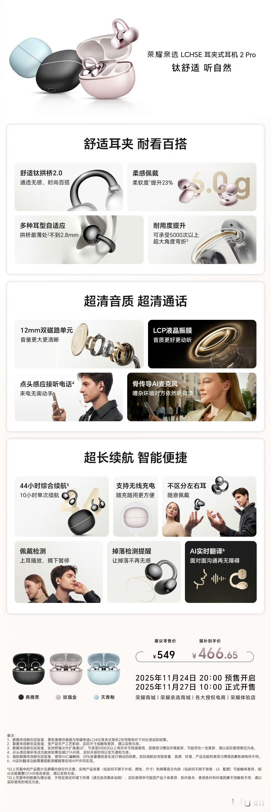 也只有荣耀敢推出耳夹式新款耳机了。 国内最先发布耳夹式耳机的是华为。 华为为该设计申请了专利。 有个别友商曾发布过耳夹式耳机。 但后续便没了动静。 很多友商也未发布耳夹式耳机。 这说明华为会维护自身专利。 但如今荣耀发布了新款耳夹式耳机。 如此看来,只有荣耀敢与“老东家”硬刚。 它也清楚“老东家”不会把它怎样。 荣耀耳夹式耳机