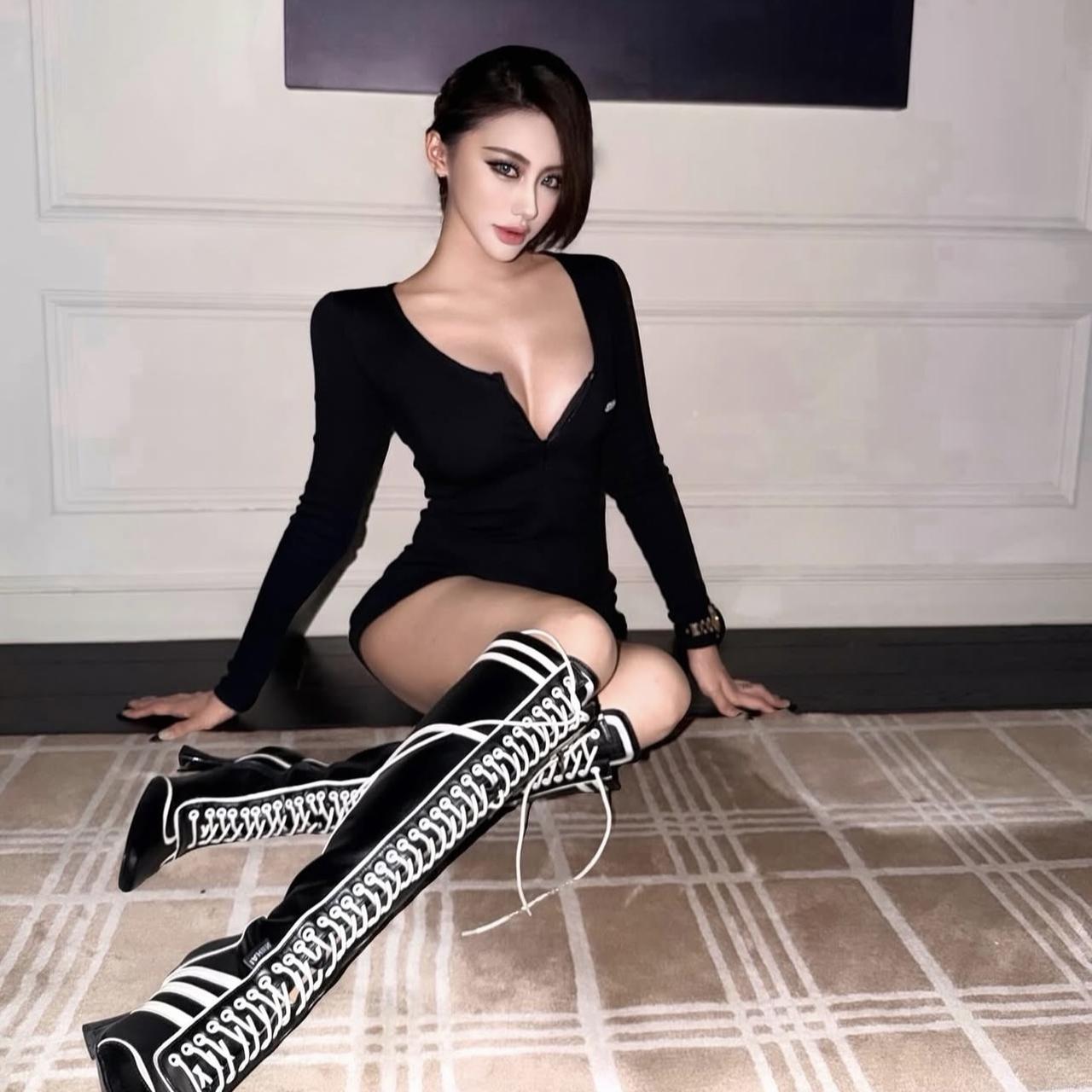 开叉包臀裙露肤不浮夸,裙摆微开露长腿,性感得恰到好处!修身吊带短款上衣勾勒出饱满