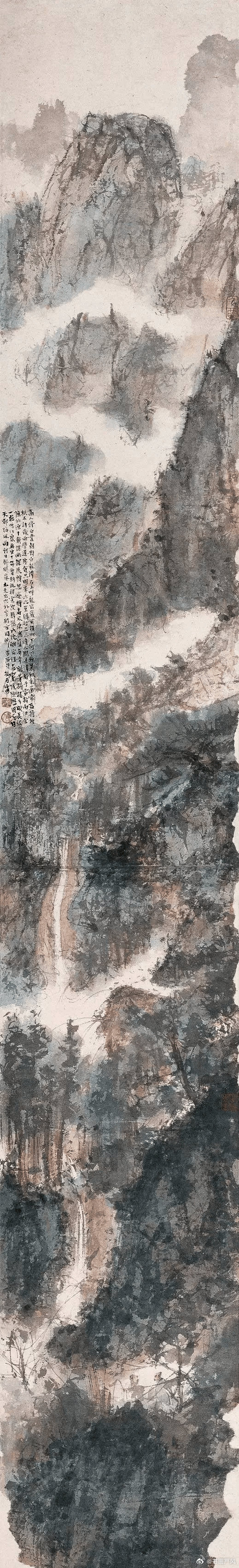 傅抱石《观瀑图》作于1945年,时年画家41岁。傅抱石(1904年10月5日