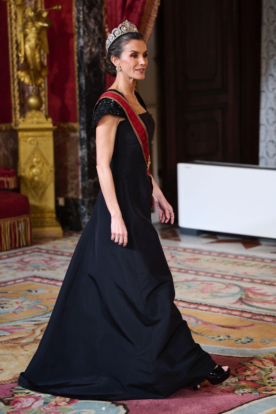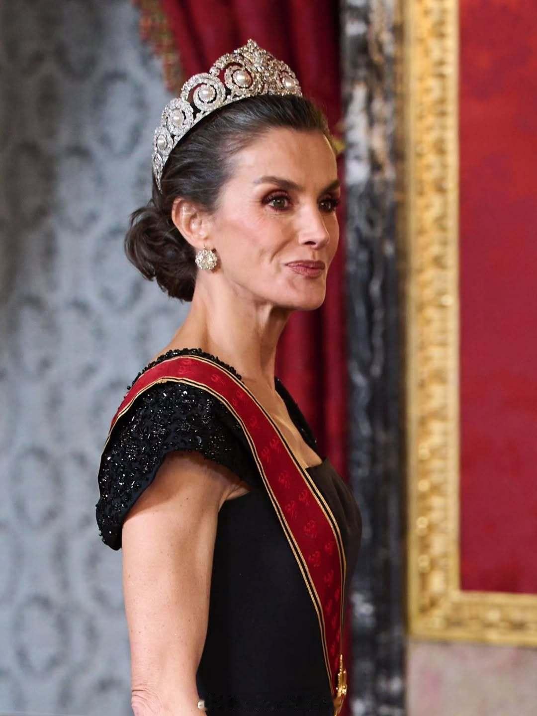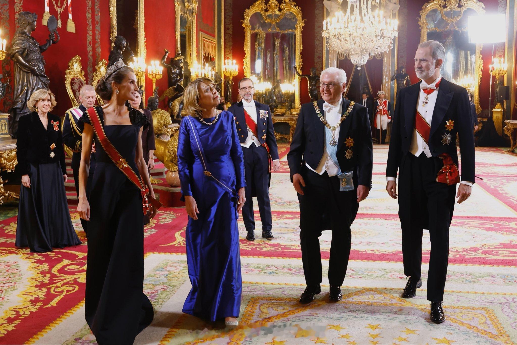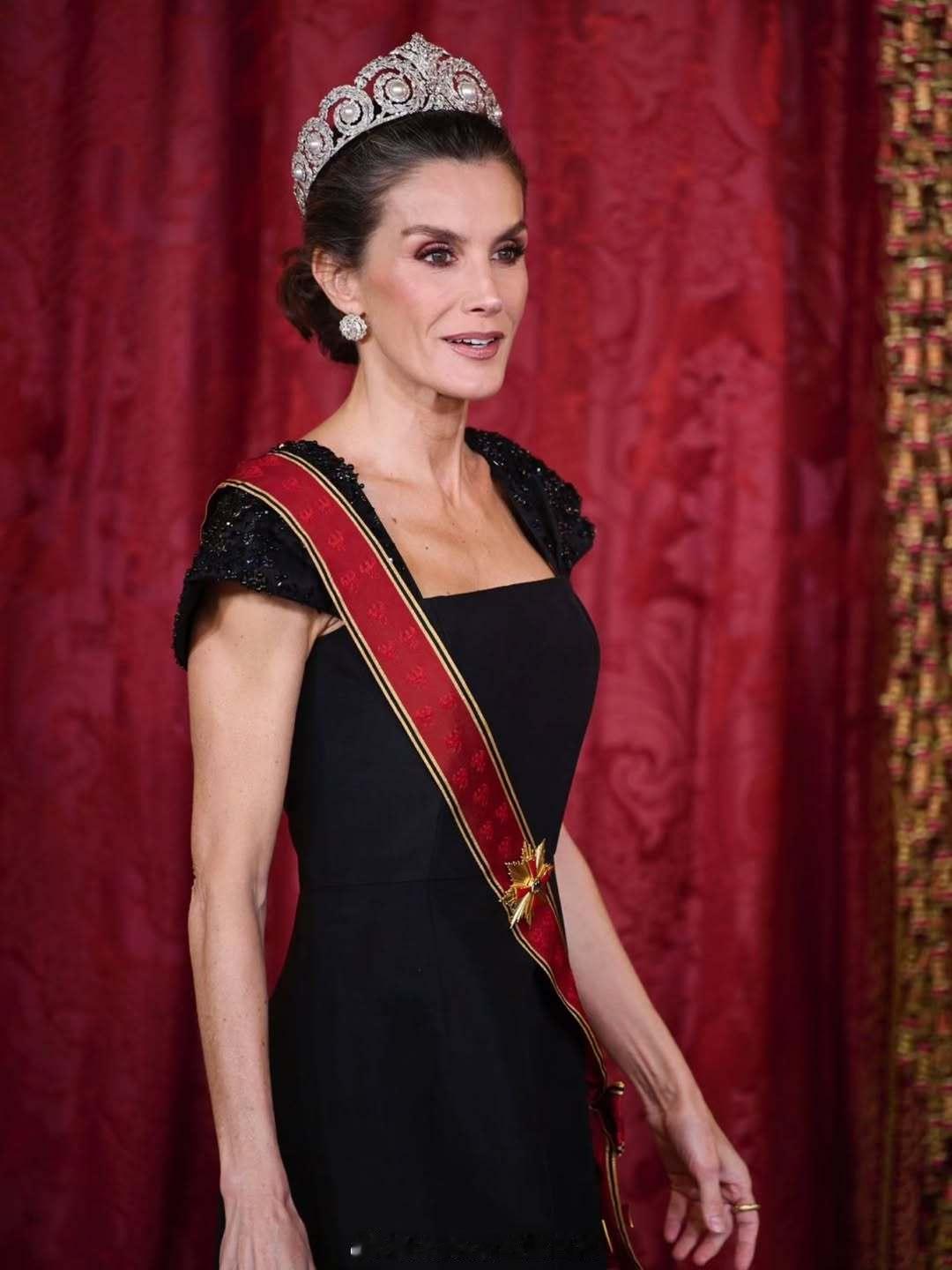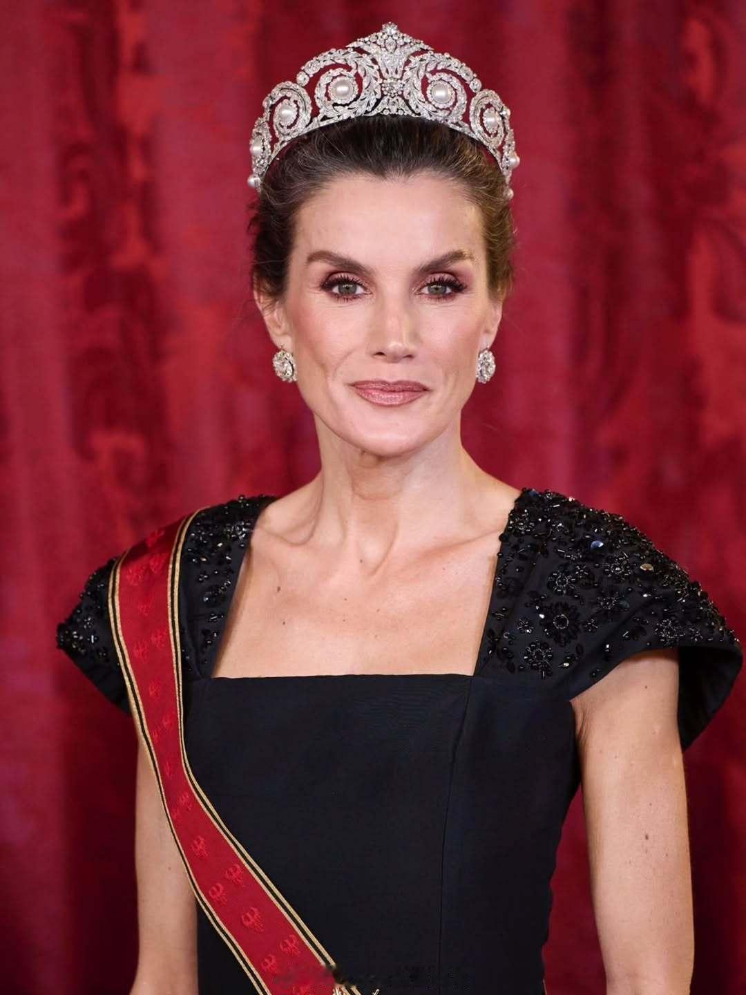 莱后2025年的第二个tiara time~昨天晚上(11月26日)费莱在马德里皇宫为来访的德国boss夫妇举行欢迎晚宴,莱后黑色礼服来自Carolina Herrera,可能是因为大鸢尾借出去了,大珍珠又戴过一次,莱后想起库房里还有老货了,(终于!!!!终于!!!)佩戴了卡地亚小珍珠王冠和joyas de pasar里的钻石耳环,美美莱后!今年我想看到的都看到了,新项链、新礼服、小珍珠、麻花辫盘发,下一步梦诺索“上桌”!