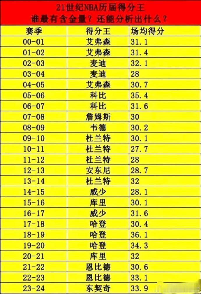 NBA:进入21世纪哪一届的得分王最牛逼?