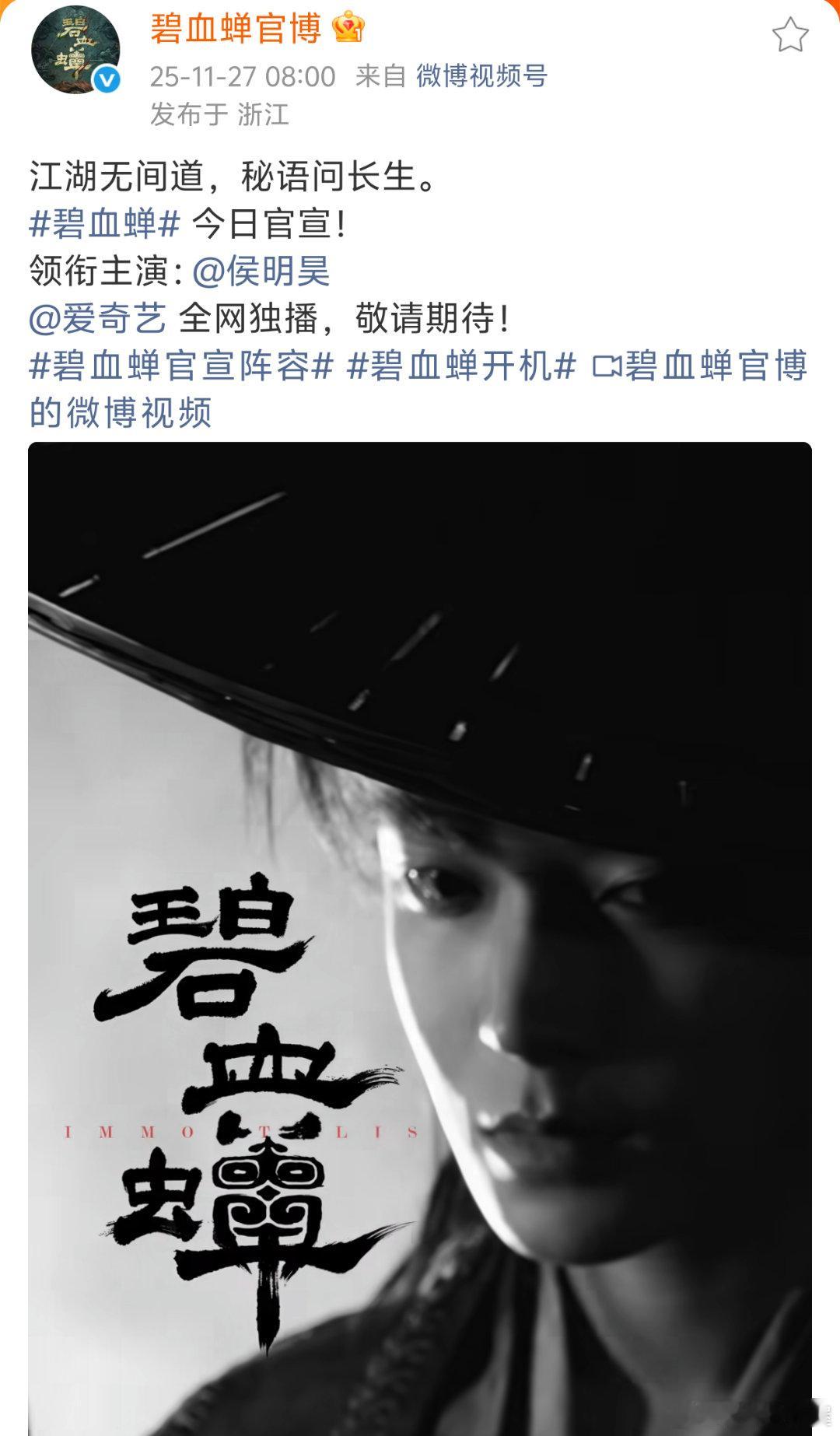 侯明昊/张文昕/徐振轩《碧血蝉》官宣阵容侯明昊一番单独官宣,一番男主的排面给的真足,有演技又努力的小侯好起来了!碧血蝉官宣阵容