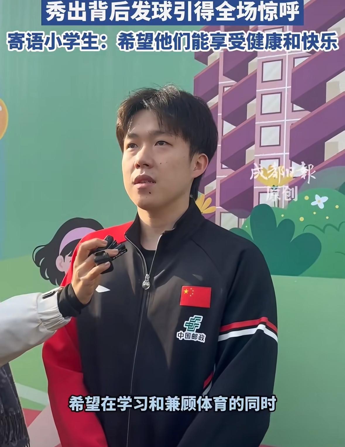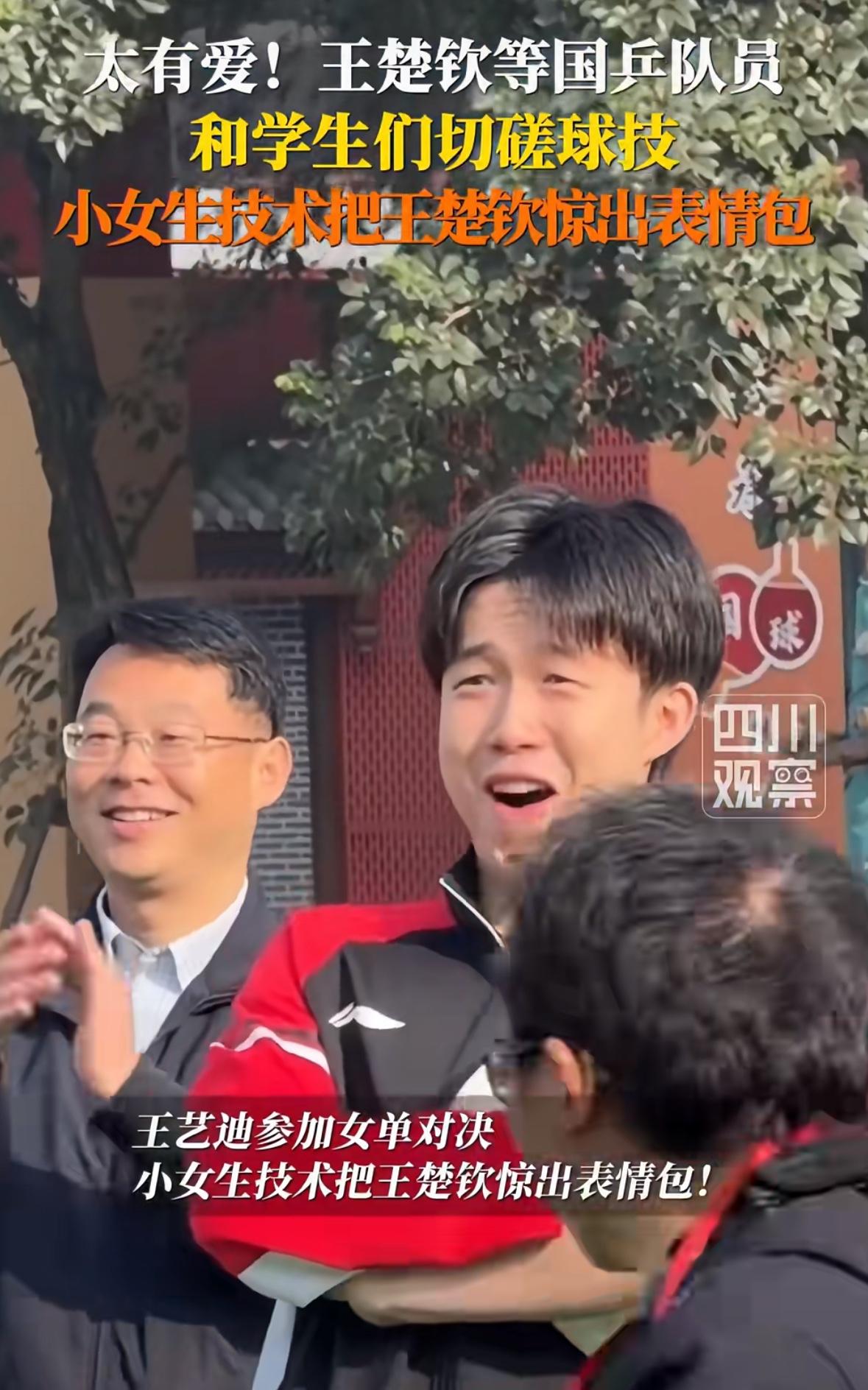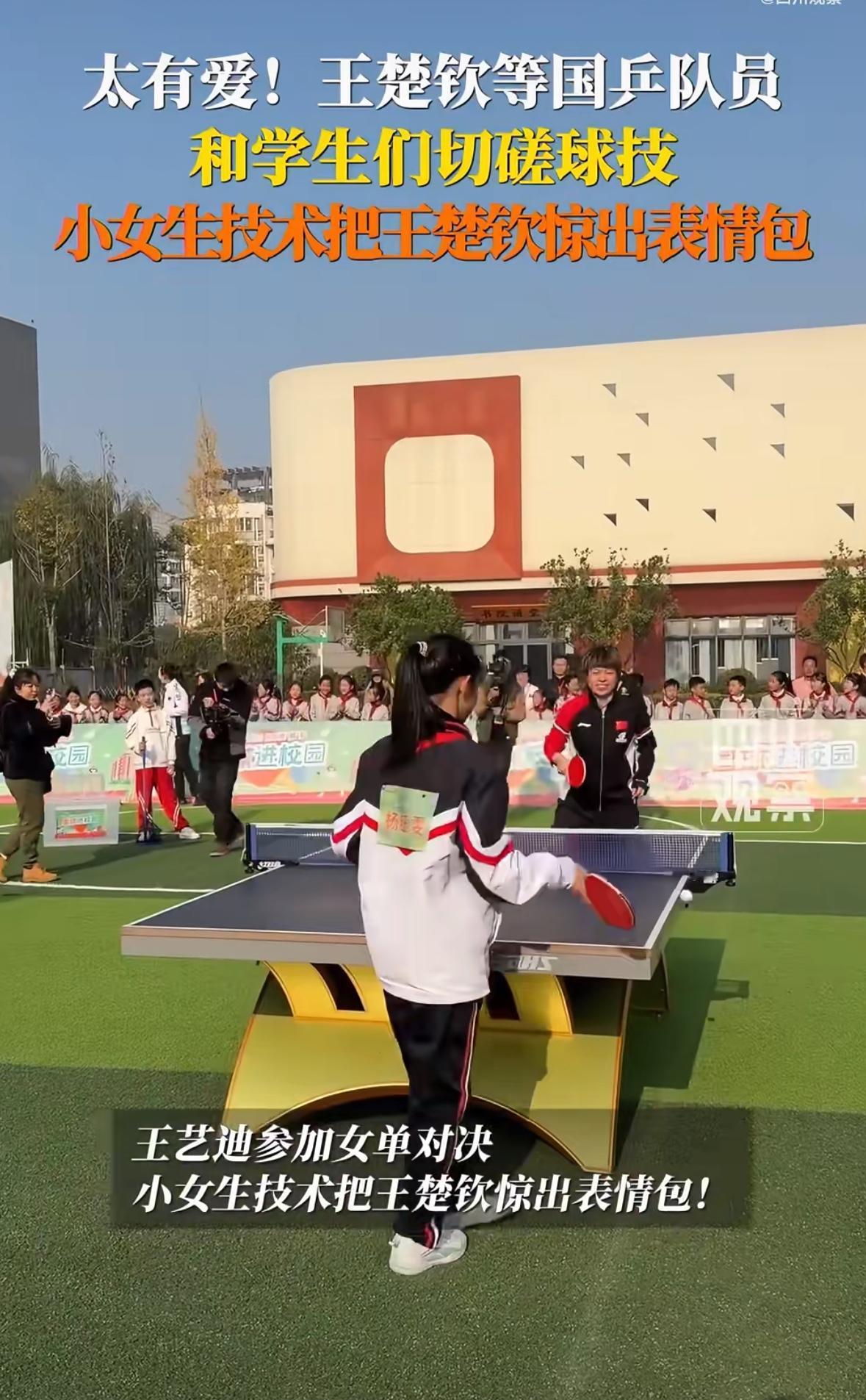 11月27日 和王楚钦打球的同学吐槽王楚钦:他让我去晃眼那边打球 还把我的签字笔带走了! 国乒进校园活动结束后, 和王楚钦打球的同学吐槽王楚钦: “王楚钦哥哥让我先发球, 但是他选择了另一边, 不晃眼睛的那一边, 让我选择晃眼那一边打球, 我找他签名的时候, 他忘了还我笔, 把我的记号笔拿走了, 昨天晚上我非常激动, 有点睡不着, 早上上课,那20分钟我 都没听进去!” 小同学真可爱, 真诚实, 王楚钦的眼睛晒不了一点太阳, 你选择发球,我选择场地, 公平公正嘛, 没毛病啊! 至于笔让王楚钦拿走了, 回头你找他要回来吧, 这都不是事!