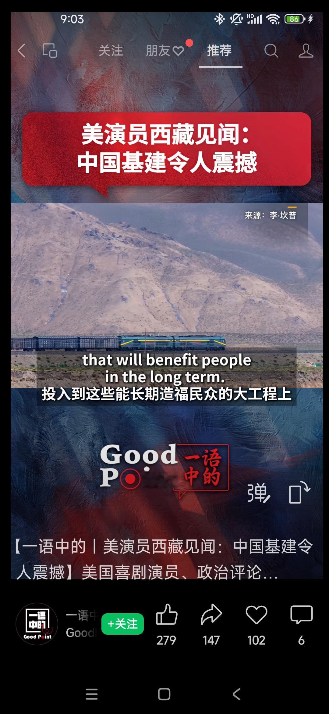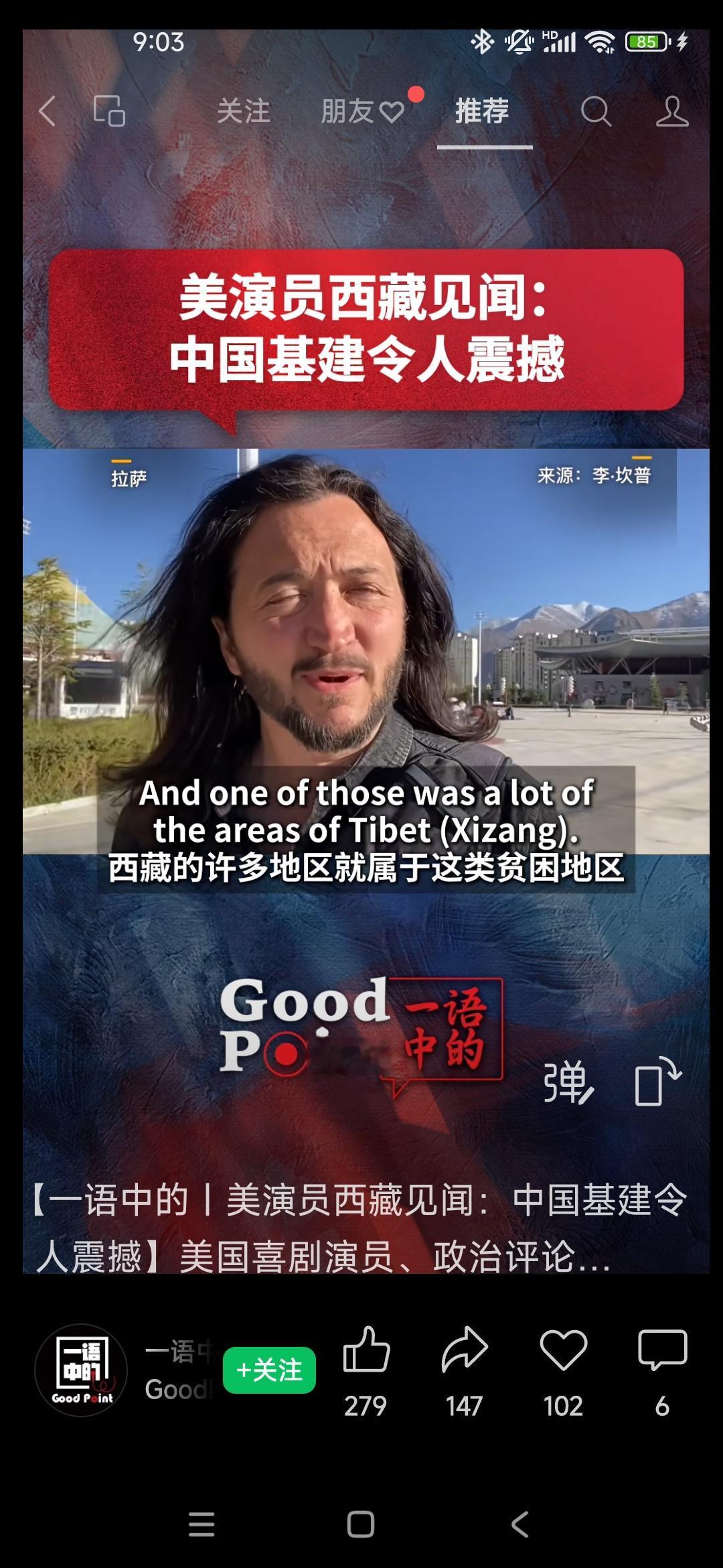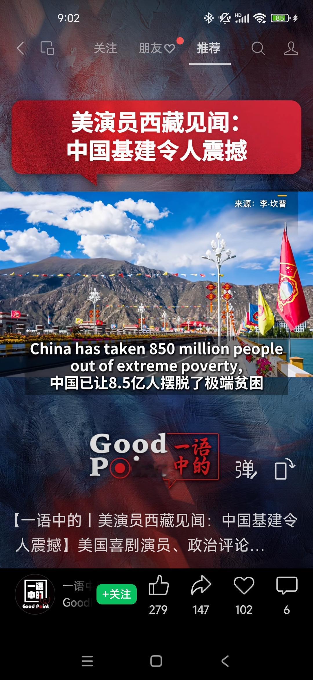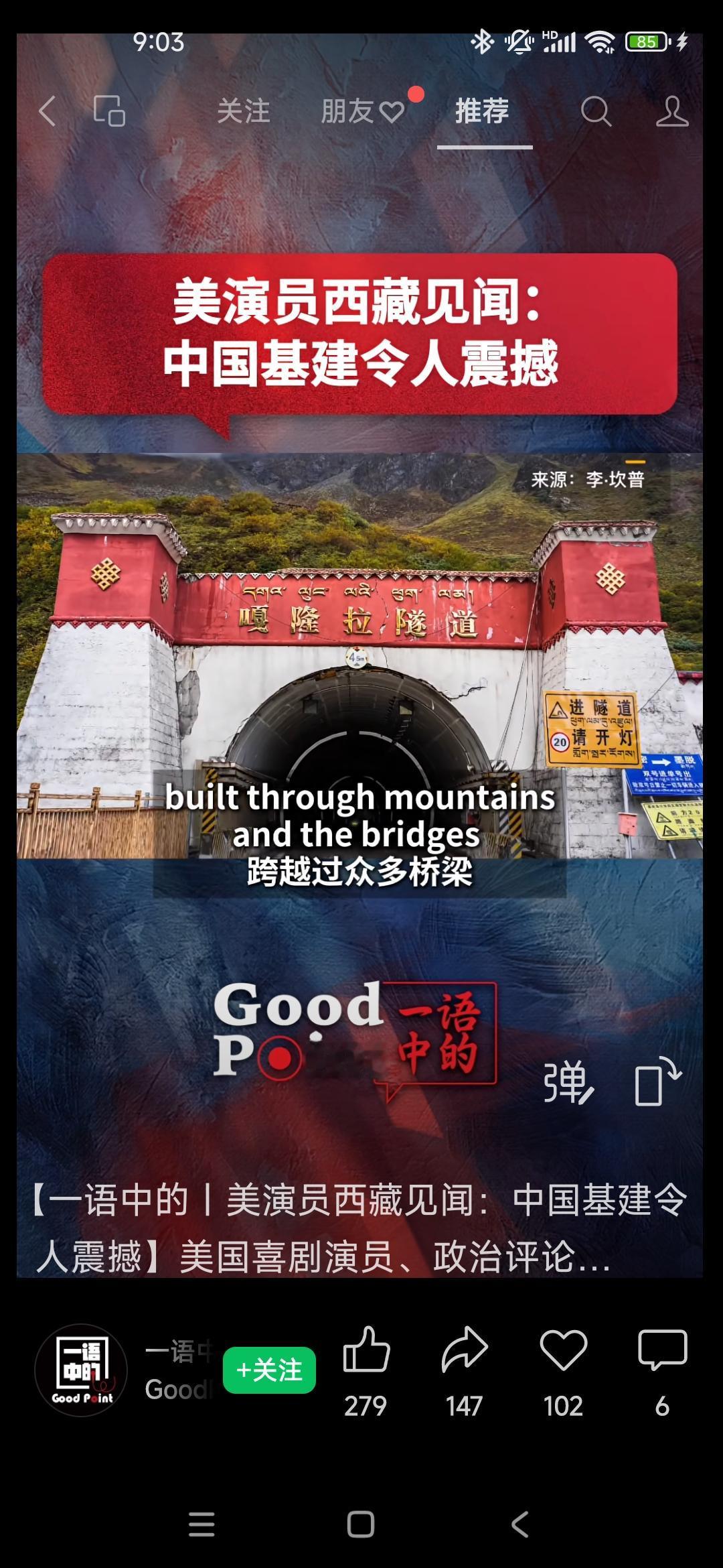 "美国演员李.坎普到访西藏,由衷表示中国基建令人震撼" 我到访中国西藏,穿越了无数隧道和桥梁,看到了无数大坝。 这都是极其宏伟的工程,尤其在西藏,有很多贫困的地区。 中国政府也投入大量资金到能造福民众的许多工程上。 盈利与否,中国并不在意(这是核心--全心全意为人民服务)!