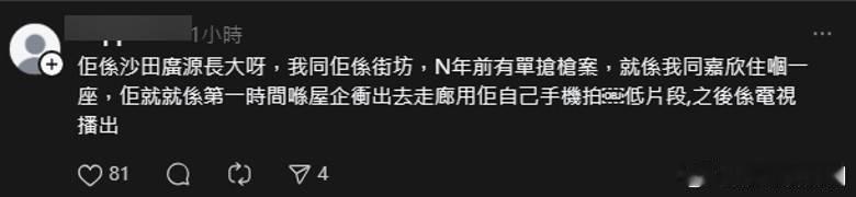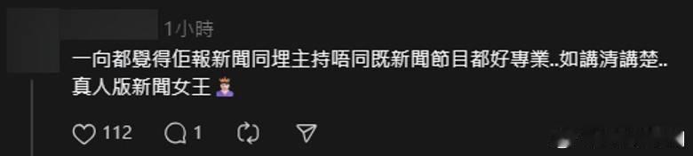 宏福苑五級火︱陳嘉欣直播災情強忍情緒 獲讚「真實版新聞女王」.大埔宏福苑五級火災情嚴重,市民靠新聞報道密切關注現場狀況,當中昨晚(26日)無綫新聞主改以播出直播形式轉播事件,主播為陳嘉欣。有網友睇到新聞時,指一向專業嘅陳嘉欣,於結尾幾句時,第一次聽到佢把聲震晒咁報道,令網友擔心其心情是否被災情影響,更有人誤傳佢係宏福苑長大,以記者身份報道番自己家園火災。有網友留意到,本身去到第一直現場報道嘅陳嘉欣,留守幾小時後,於晚間新聞已返回錄影廠,主播衫都已換上黑色套裝,以低調方式悼念火災逝者,面對細節亦態度專業。唔少網友對陳嘉欣昨晚表演感動容,大讚佢係「真實版新聞女王」,於直播時表達清晰、反應快、語氣自然、專業,更有網民力讚佢係一個非常非常優秀既記者,有資格孭得住個新聞台。而網民誤會佢於大埔長大,但其實陳嘉欣於沙田廣源邨長大。有鄰居指早年其所住大廈曾遇上搶槍案,陳嘉欣第一時間喺屋企衝出去走廊,用自己手機拍低片段,最後片段獲電視台選取播出,可見佢英勇上前線一面。TVB