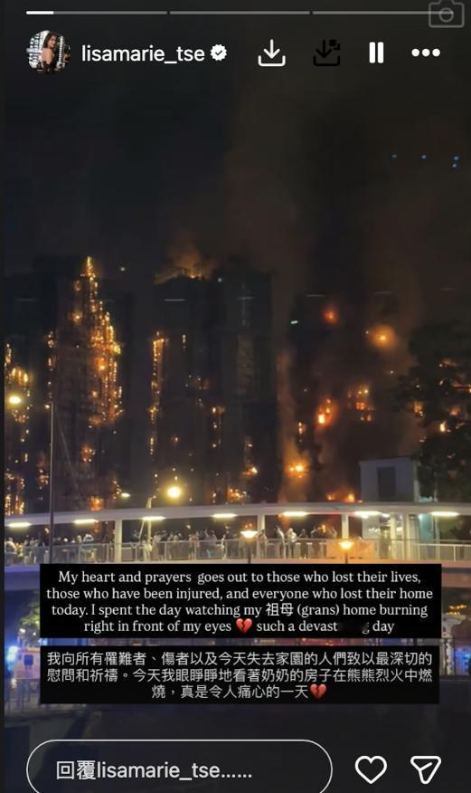 眼睁睁看着奶奶祖屋被烧,港姐小花直呼心痛 昨天下午,位于香港大埔的宏福苑发生五级特大火警震惊全城,而已经离巢无线的2020年港姐冠军谢嘉怡就在社交网络表示 “我向所有罹难者、伤者和今日失去家园的人致以最深切的慰问和祈祷,今天我眼睁睁地看着奶奶的旧屋在熊熊烈火中燃烧,真的令人心痛的一天” 原来谢嘉怡是土生土长的大埔人,她的爷爷曾经在大埔运头街经营食店,在1972年开张,由于当中的鸡粥非常好味,所以成为了大埔的老字号,所以在爷爷生意小有所成的基础上,谢嘉怡的爸爸都学有所成、留洋英国,一开始凭借着在苏格兰开中餐厅发家,后来就创办了两间再生能源公司,而谢嘉怡在家人的支持之下,读大学时候就开始在英国买楼,现在已经买了两层楼。所以他们一家人已经长居英国,不再住在祖屋度。 可想而知,谢嘉怡的家里尚算是经济优渥,祖屋在火灾付之一炬都是没有了一份份感情牵挂,相比之下,对于好多基层家庭来说,一场大火就令半生积累、一无所有,何止一句痛心那么简单,所以最后我只想说,或者钱财都是身外物,愿大家都平安啊。