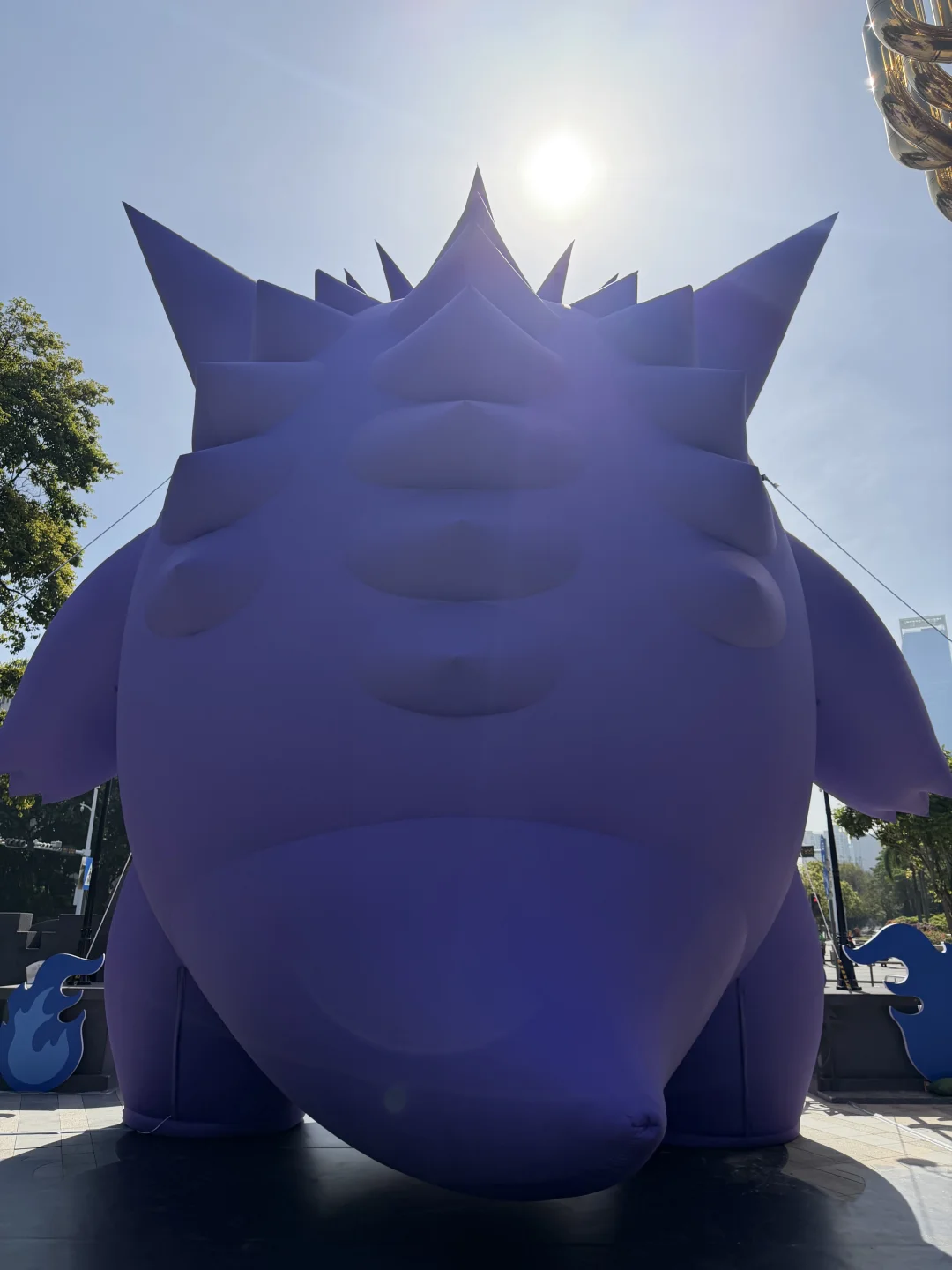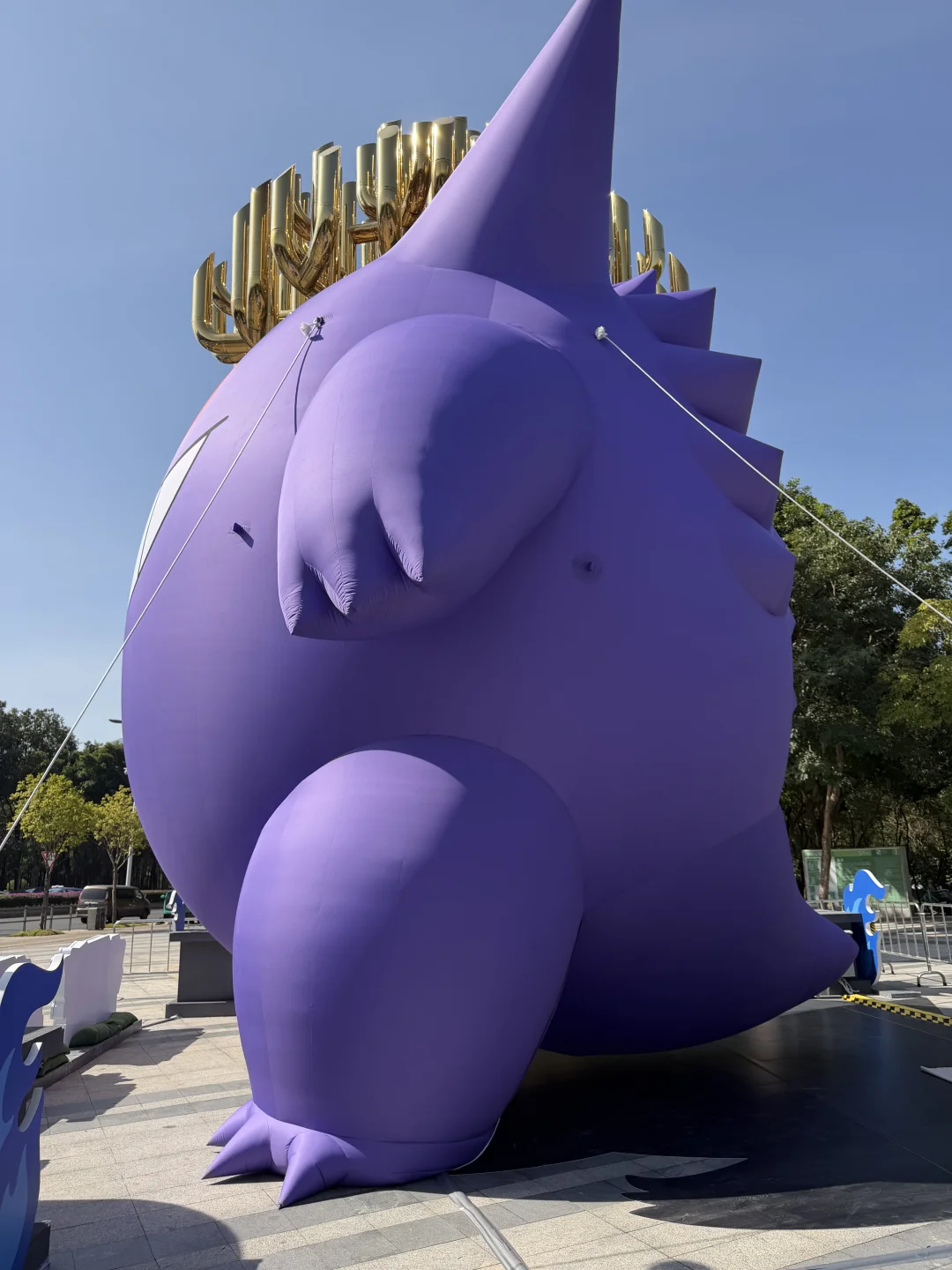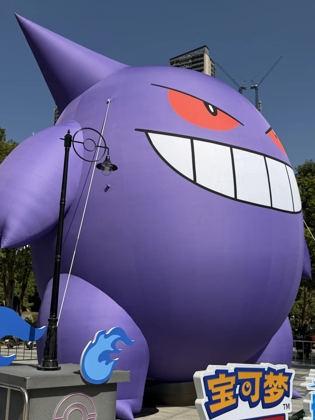 昨晚路过看到工作人员在给耿鬼打气💨 今天一早就看到胖乎乎圆滚滚的紫色肉身,在公园里特别显眼,忍不住拍几张