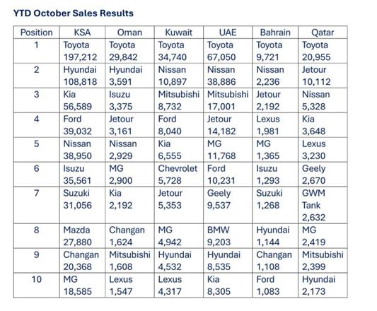 我真没想到捷途在海湾国家销量这么好。 丰田依旧在所有市场稳稳第一,这在中东毫无悬