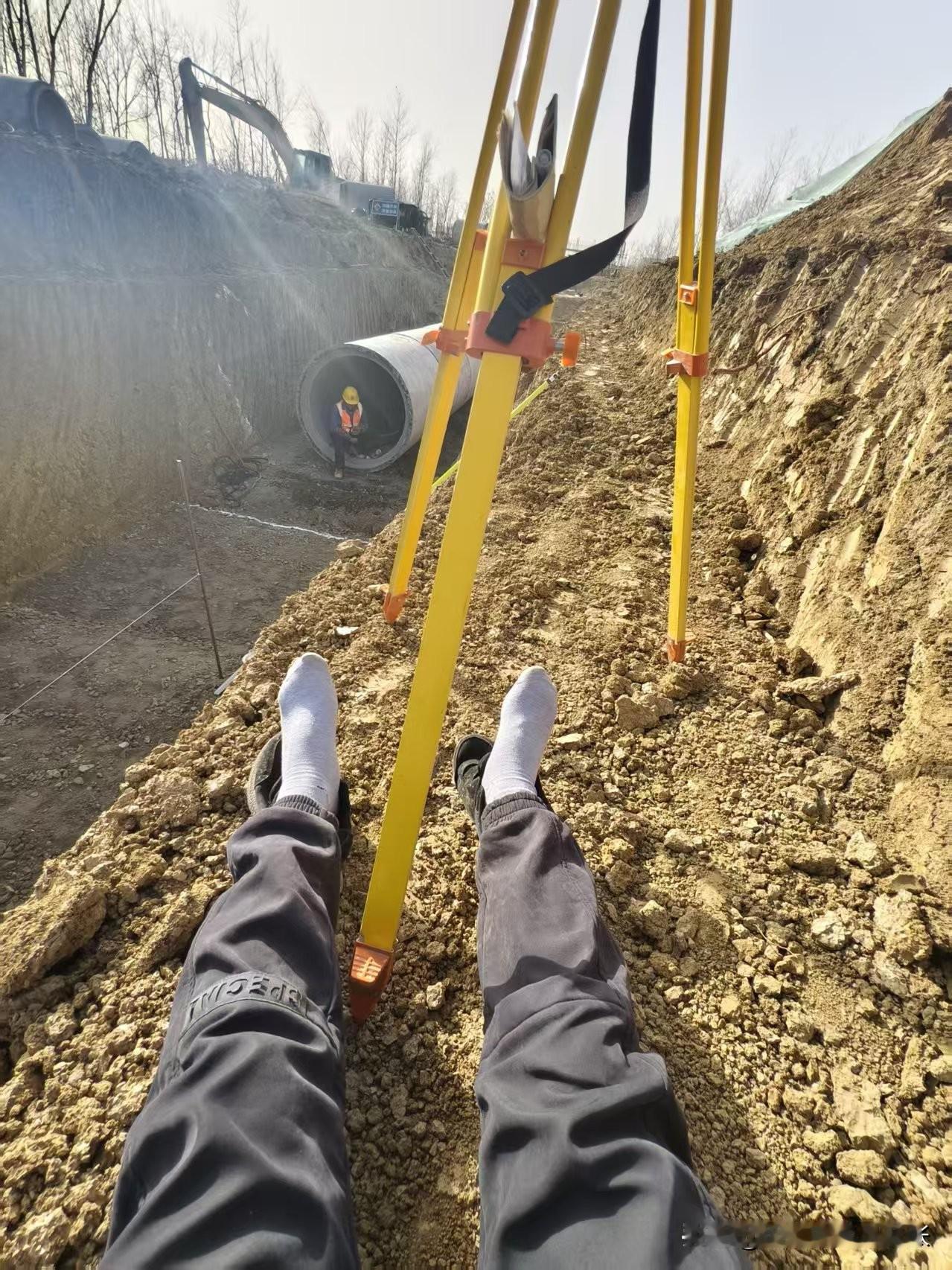 工地休息之际,我把脚搁在测量仪器上,这仪器宛如我们并肩作战的“战友”。工地生活着实枯燥乏味,测量员每日不是忙着测量,就是专注于放线。 不过,偶尔也会有小惊喜降临。水准仪有时竟能摇身一变,成为“高清望远镜”。要是碰到前来视察的业主、监理,亦或是机关下来体验生活的小妹,那便成了工地上一道亮丽的风景线,大家也能大饱眼福。 就说国庆假期,许多人要么外出游玩,要么陪伴家人,可我们工程测量员仍需坚守工地,校准测量的“精准度”。这脚搭在仪器上的短暂休憩,也是这枯燥工作中的一抹小惬意。