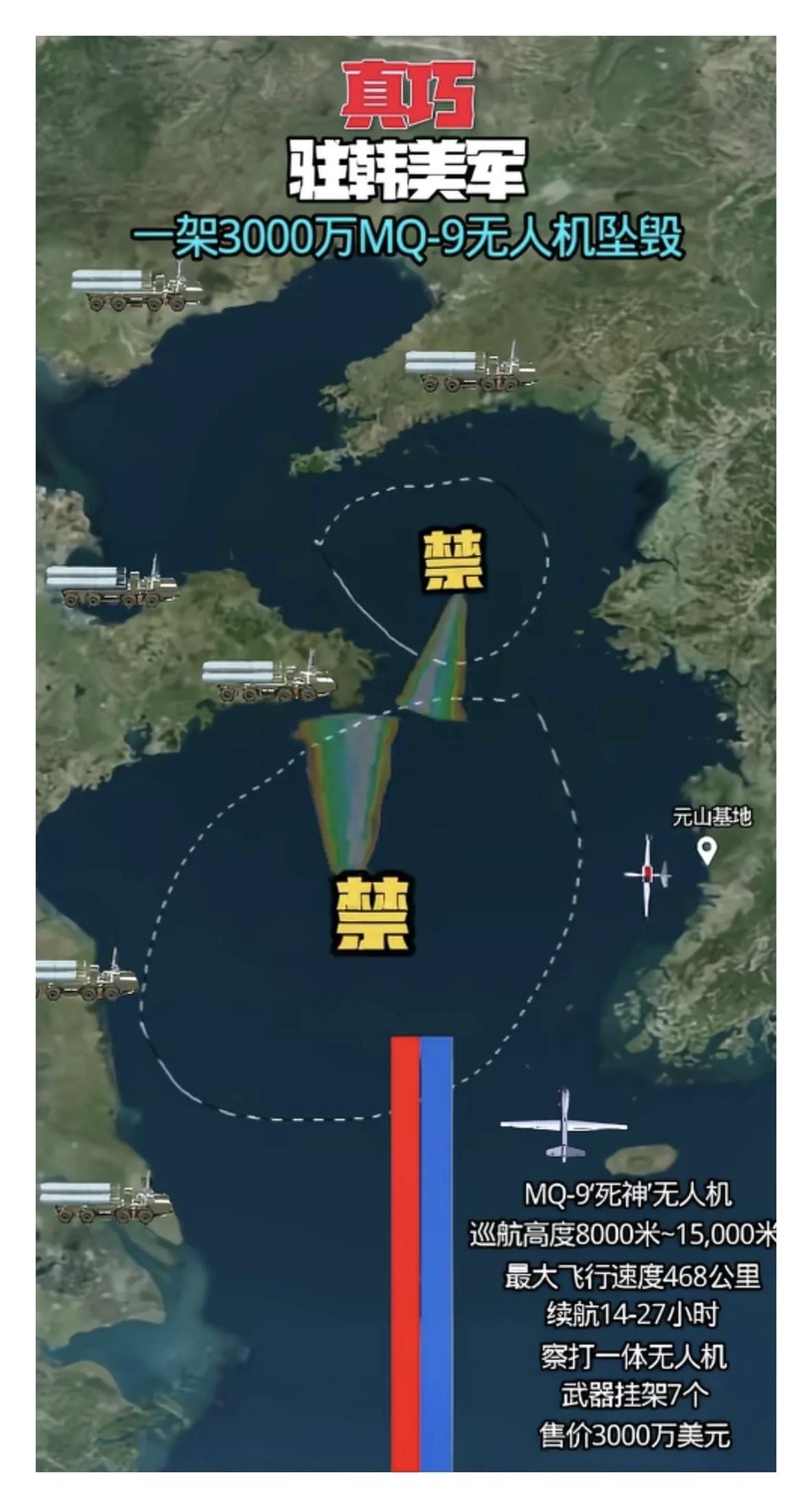 这么巧?解放军正在黄海演习,美军无人机却在附近坠毁了! 在黄海附近坠毁的这架美军MQ-9无人机,若说与解放军在黄海的演练行动没有关系,那也说不过去,美军这架无人机此时出现在黄海上空,可能就是想打探点解放军演习的信息,但若说有关系,也就这点关系了。 看到有网友猜测,是不是被击落的?大国之间相处可不是打电脑游戏说干就干,击落一架MQ-9无人机不是小事,不到万不得已不会这么干,再说了当时这架MQ-9是在全罗北道群山市末岛附近海域坠毁,距离解放军的演练区域还很远,对解放军的演练行动构不成什么威胁。 MQ-9无人机坠毁不是什么新鲜事,相关数据显示这款无人机自2007年服役以来已经坠毁至少20架,属于没事就摔一架的那种。