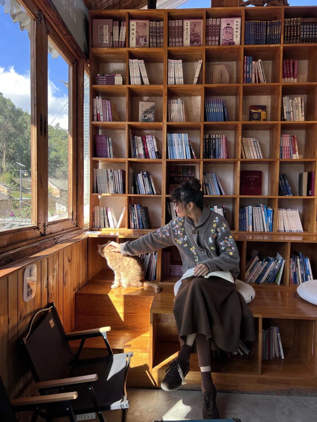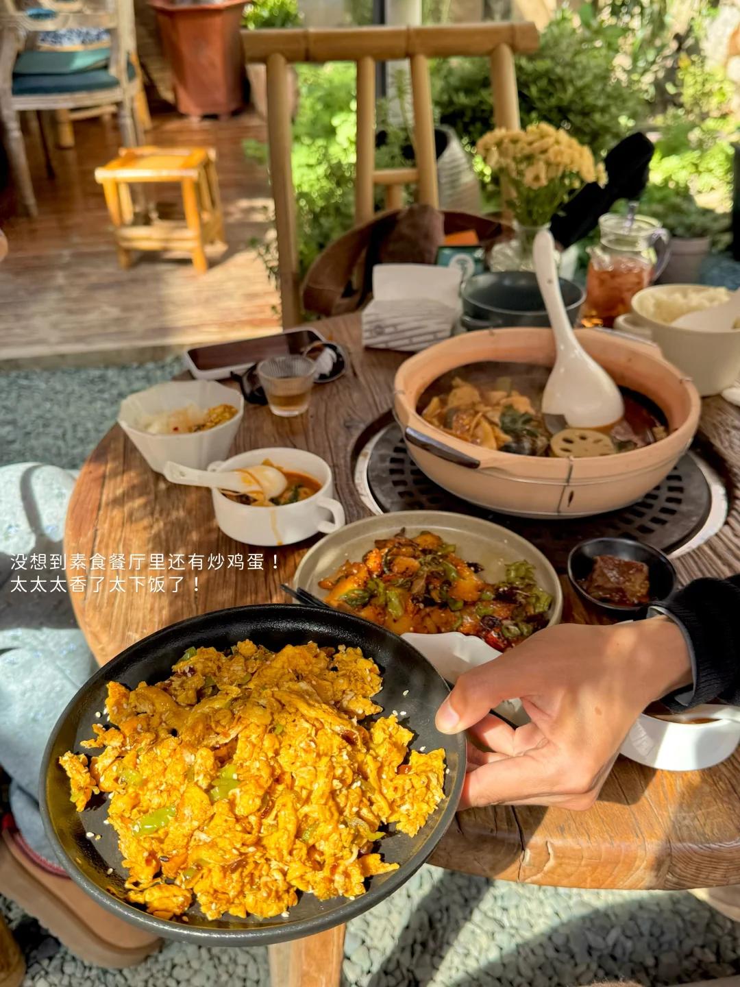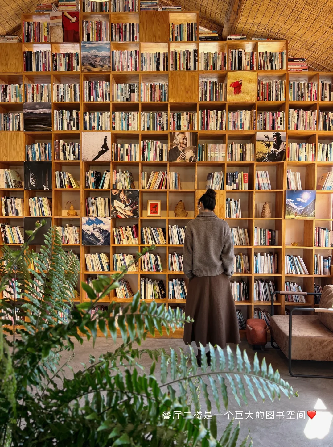 在一楼的院子里边晒太阳边吃饭,暖呼呼的。二楼是一个巨大的图书空间,很美,吃完饭还能接着待在这里喝茶喝咖啡🍵