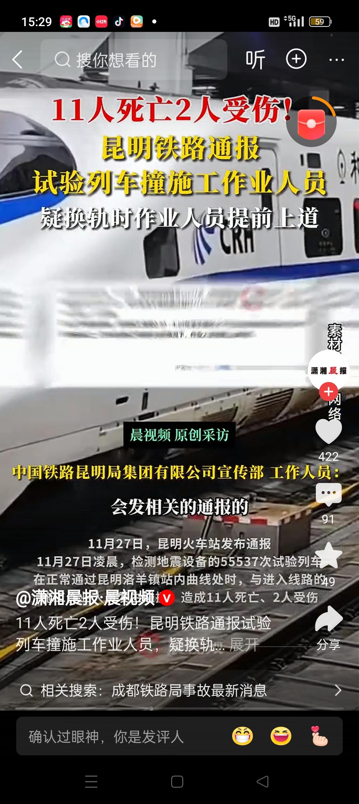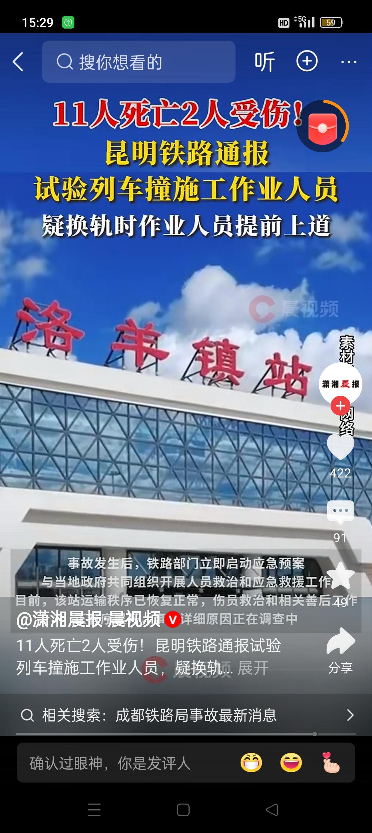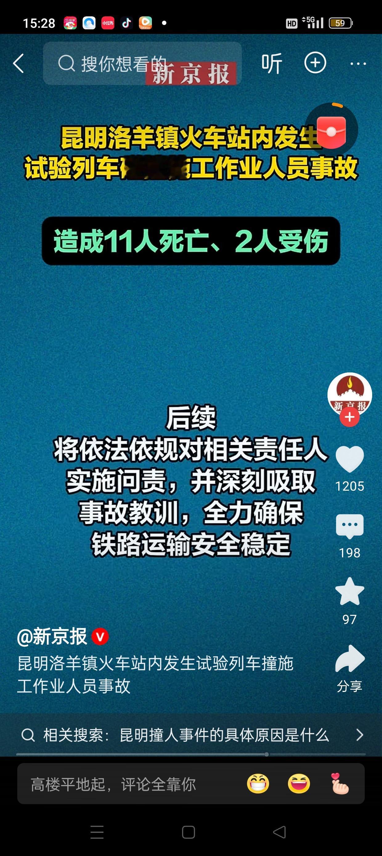昆明铁路突发惨剧:试验列车撞击施工作业人员,11人不幸遇难,事故原因引发关注 近日,昆明铁路发生一起令人震惊的事故,一列试验列车在行驶过程中与施工作业人员发生碰撞,造成11人当场死亡,另有2人受伤。此次事故不仅令人痛心,也引发了公众对铁路施工安全的广泛关注。 据悉,事故发生在昆明某铁路段,事发时正值施工高峰期。初步调查显示,事故疑似源于换轨作业中的疏忽:作业人员在未按规定时间和位置提前撤离轨道,竟然提前进入列车运行区域,导致试验列车无法及时避让,最终发生了悲剧。事故现场一片混乱,受害者大多是施工现场的工人,他们在施工过程中未能及时避让高速行驶的列车,令人痛心。 铁路部门迅速采取应急措施,派出救援队伍赶赴现场进行救援,目前伤者已被送往医院接受治疗。事故原因正在进一步调查中,相关负责人表示,将严格追究责任,并加强铁路施工的安全管理措施,确保类似悲剧不再重演。 此次事件再次敲响了铁路施工安全的警钟。铁路施工本身具有一定的危险性,相关单位必须严格执行安全规程,确保作业人员的安全撤离时间和位置,避免因疏忽造成无法挽回的损失。同时,也提醒广大施工人员要时刻保持警惕,遵守安全规定,确保自身和他人的生命安全。 事故的发生令人痛心,也促使相关部门反思和加强安全监管。公众期待有关部门能彻底查明事故原因,落实整改措施,避免类似悲剧再次发生。铁路安全事关每个人的生命安全,让我们共同关注,推动铁路施工安全水平不断提升,守护每一条铁路上的生命线。