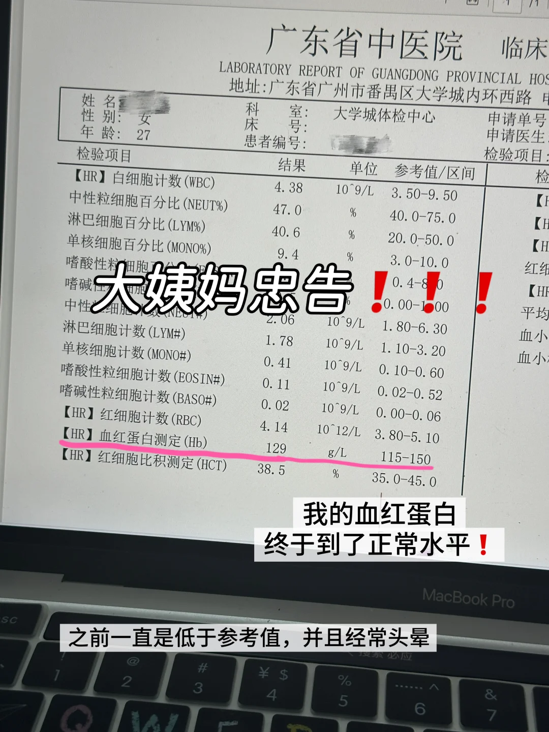 上一次体检着重关注了我的血红蛋白,之前很长一段时间都含量低而且大姨妈出走,中医说是气血虚