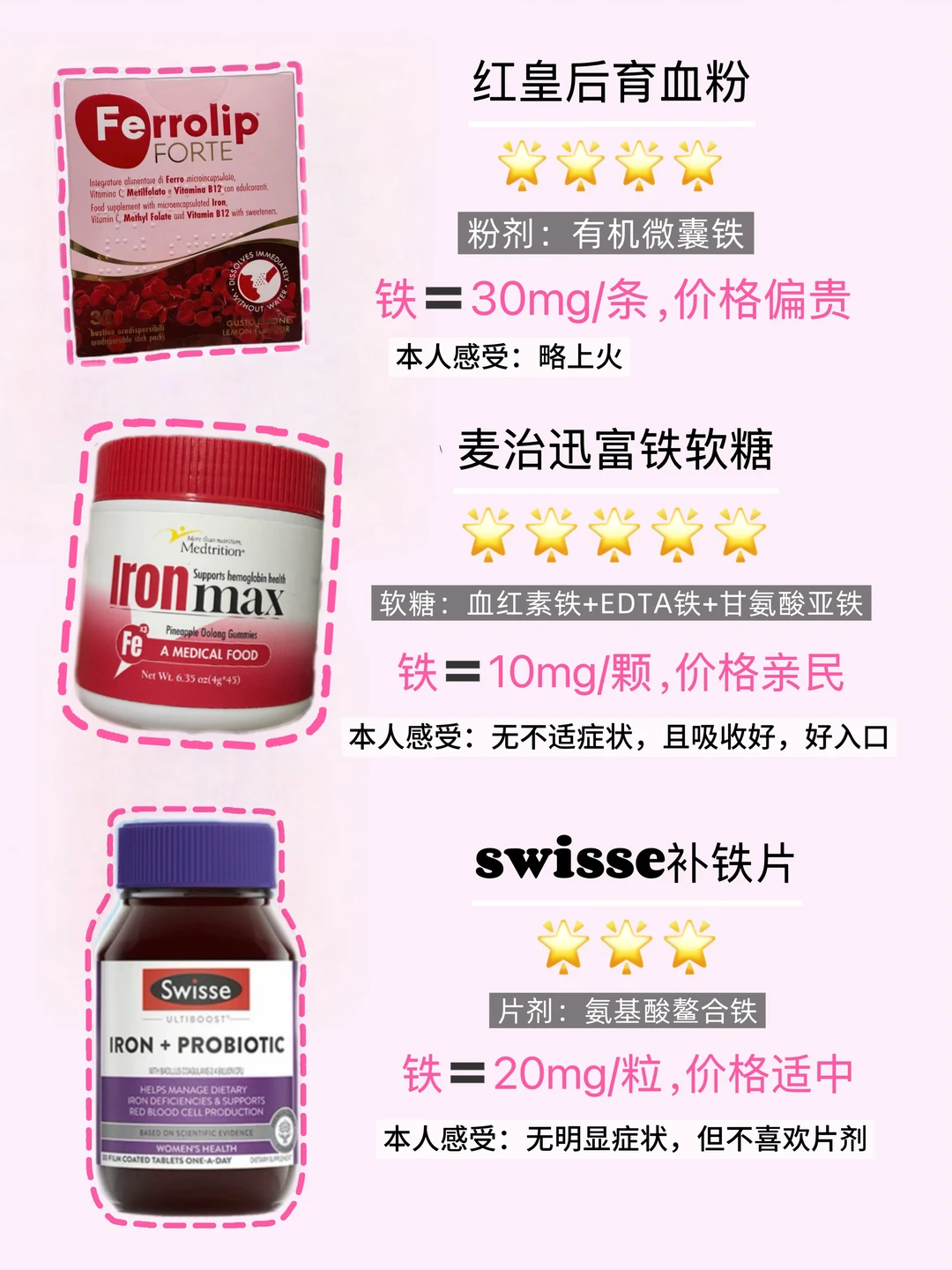 [向右R]补铁:尝试过很多补铁的瓶瓶罐罐,红皇后育血粉,swisse补铁片,麦治迅富铁软糖等…感受最好的是麦治迅富铁软糖