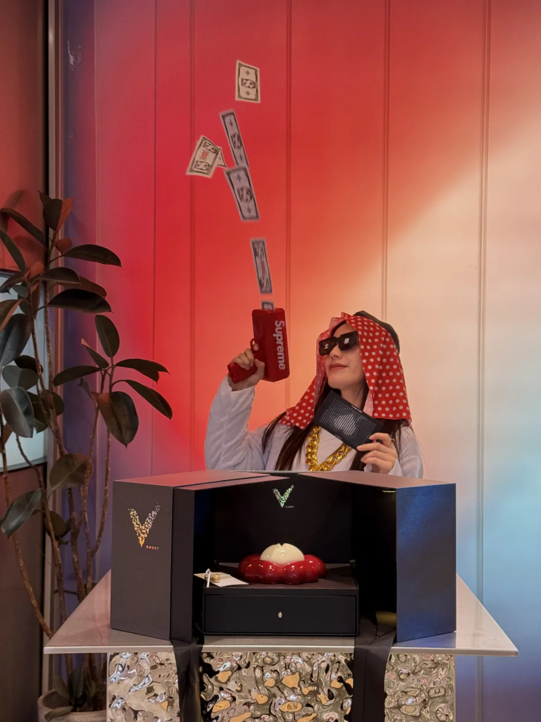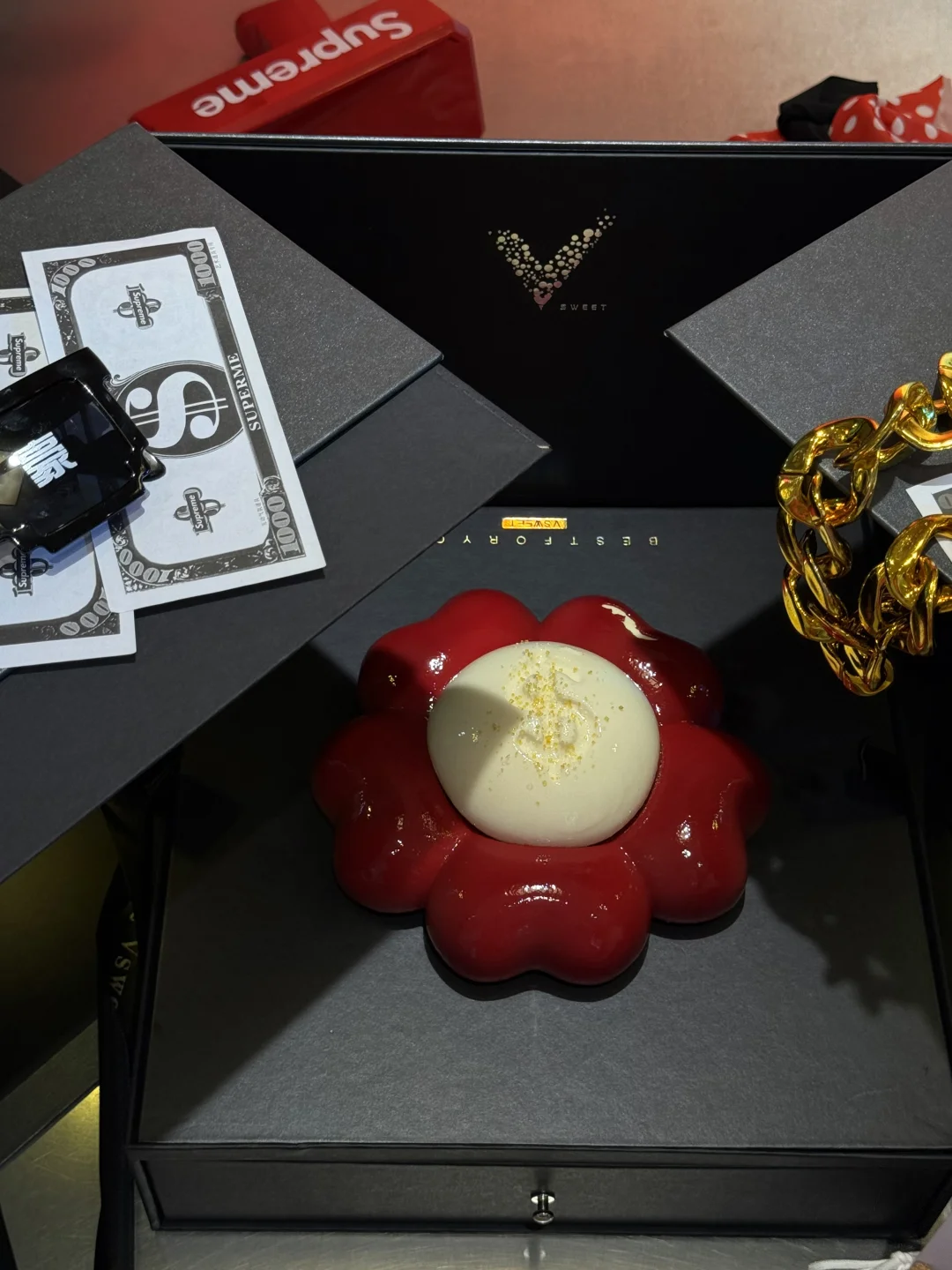 北京不愧是大城市‼️ 生日蛋糕都卷出新高度🎂 寓意超好的“富贵花”蛋糕🍰 桃花形中心印有💲字样 寓意有钱花💰 有桃花🌸 这应该是所有女生的梦想吧🌈 慕斯蛋糕🎂搭配莓果,酸甜不腻 买蛋糕还搭配了阿拉伯套装装扮 这波创意深的我💕呀 头上戴块布,全球我Zui富🥳 包装和搭配金属餐具🍴也是妥妥的高级感 品质和创意双拿捏🫴 请生日蛋糕都按照这个标准卷起来‼️