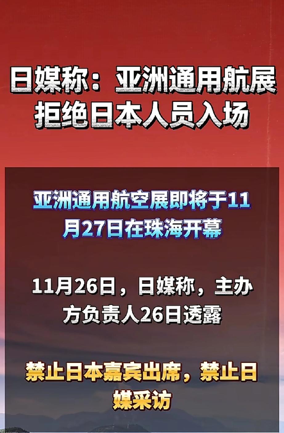 中国航展猛地对日本关上了大门! 这背后的原因,日本应该心知肚明,这也让许多网友纷纷表示解气! 就在珠海亚洲通用航空展开展前一天,主办方当场就吊销了日本媒体的参展许可证,连所有日本嘉宾都不让进了。这一下可把日本共同社打了个措手不及,现场的记者全都被拦在了门外。 有业内人士分析,这和日本政客近期在涉台问题上发表的不当言论脱不了干系。不过更重要的是,这次熊猫家参展的381家企业里,里面还有不少带着军工背景的科技公司。要知道啊,日本过去就爱借着航展的名义搞情报收集,这次直接连门都不给进了。有网友就调侃:防贼就得从门口就防起! 现场流出的照片能看到,展馆里头熊猫自主研发的民用航空技术真是琳琅满目。有观众拍到新型航电系统的时候还感慨:"这些好东西要是被人惦记上,那可就麻烦了。"虽然主办方没直接说,但明眼人都明白——核心技术肯定得捂得严严实实的。 大家觉得这事儿怎么样?是单纯的外交博弈,还是就是为了防间谍呢?来评论区聊聊您的看法呗~