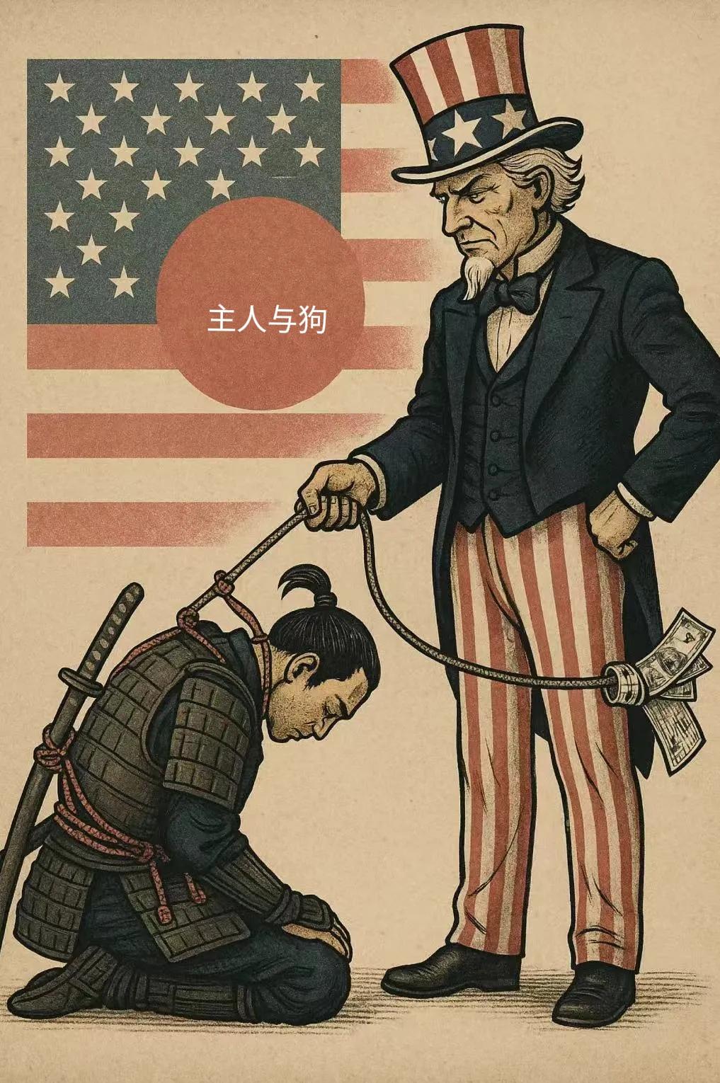 主人与狗 看到这样一幅漫画,不由得想起最近美国总统特朗普与日本首相高市早苗的通话,美国与日本保持着就是这样一种关系。 这副漫画,山姆大叔用绳子牢牢的拴着日本武士,仿佛是在告诉武士:“别动,不老实我就勒死你!”日本漫画文化 日本狗