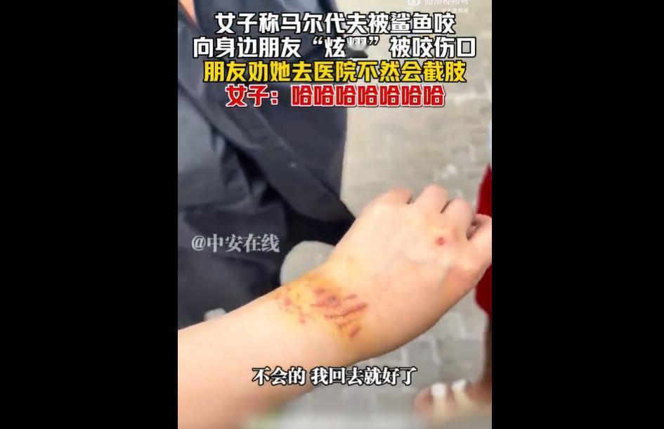 一个女网友在马尔代夫潜水时,因生理期未用卫生棉条致血液外泄、佩戴银色反光手链,遭护士鲨咬伤手臂。 朋友警告感染或截肢,她却乐观回应拒绝就医,包纱布后还二次下水拍照,后续又踩中海胆,伤口已感染仍不重视。 医生给出紧急处理建议,网友批评其无知,也指出旅游方需加强风险告知。 这位女子堪称 “海边冒险界的莽夫”! 明知生理期、戴反光链易招护士鲨,偏要 “裸奔式” 潜水,被咬后还把 “无知当乐观”,朋友劝就医她怼 “哈哈哈”,包个纱布又下水拍照,踩中海胆感染了仍不当回事,简直把危险当 “打卡道具”。 医生说鲨鱼口腔细菌 24 小时能致坏疽,致死率超 50%,纽约案例患者还丢了 20 磅肉,她倒好,拿自己的胳膊赌 “没事”。 这哪是探险,分明是 “花式作死”! 真正的勇敢从不是漠视风险,敬畏自然、听劝就医才是保命关键,别等要截肢了才哭,那时候可没后悔药吃!