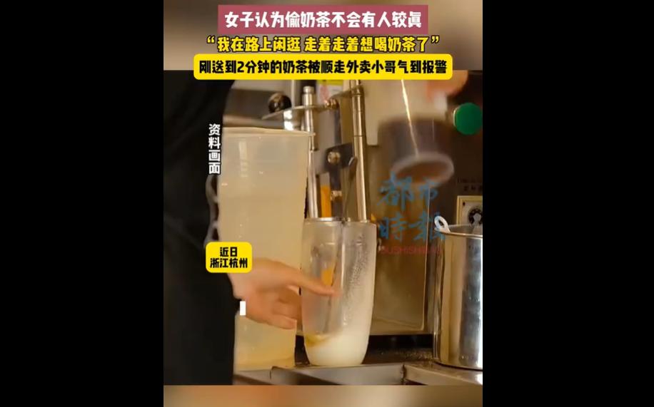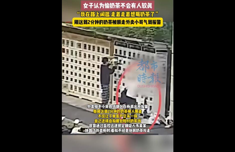 近日,浙江杭州外卖骑手小吴送完奶茶2分钟后,奶茶被韦某某顺走,小吴需自掏腰包