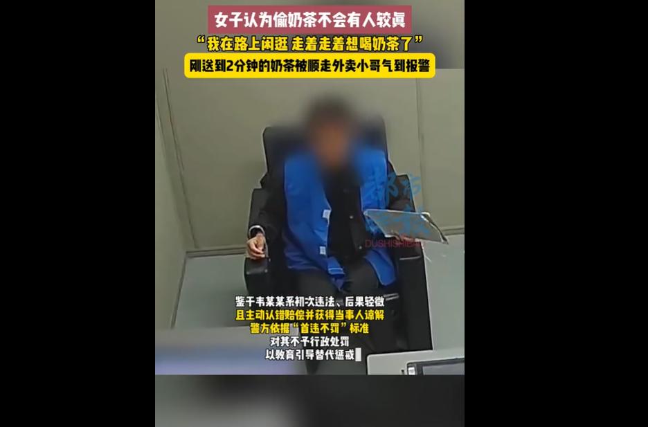 近日,浙江杭州外卖骑手小吴送完奶茶 2 分钟后,奶茶被韦某某顺走,小吴需自掏腰包赔付。 民警通过监控锁定韦某某,其称闲逛时想喝奶茶,抱着 “偷奶茶没人管” 的侥幸心理作案。 因韦某某系初次违法、后果轻微,且认错赔偿获谅解,警方 “首违不罚” 仅教育引导。 这韦某某真是把 “馋虫上头” 演成了 “小偷小摸”! 想喝奶茶不掏钱,竟盯着刚送上门的外卖 “下手”,还以为 “偷杯奶茶没人较真”,简直是把 “侥幸心理” 当成了 “免罪金牌”,结果民警一查一个准,脸都要被打肿了! 骑手小吴才是真委屈,送完餐还得自掏腰包赔,相当于白跑一趟,幸好最后嫌疑人赔了钱。 不过警方 “首违不罚” 的处理倒挺人性化,没一上来就严惩,而是以教育为主,既让韦某某长了记性,又没让小事升级。 希望韦某某经这事能明白,再小的便宜也不能贪,“顺手牵羊” 看似事小,实则已违法。 也给大家提个醒:馋了就正经买,别让一时贪念毁了人品,不然哪天被民警找上門,可就太丢人啦!