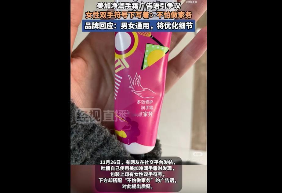 11 月 26 日,网友指美加净润手霜包装 “女性双手 + 不怕做家务” 广告语暗含性别刻板印象,其商品页曾强调 “手是女人第二张脸”。 网友看法两极,美加净称产品男女通用,门店回应会优化宣传。此前蓝月亮母亲节文案也曾因类似争议致歉。 这护手霜广告真是 “一句话引发千层浪”! 把女性手和做家务绑一起,像默认 “家务专属女性”,难怪有人不乐意。 但也有人觉得是过度解读,毕竟主打女性用户也算市场常规操作。 还好品牌没硬杠,说会优化宣传,比某些死不认错的强。 其实做家务谁都能来,涂护手霜也不分性别,广告多些 “全家适用” 的暖心感,不就皆大欢喜啦!
