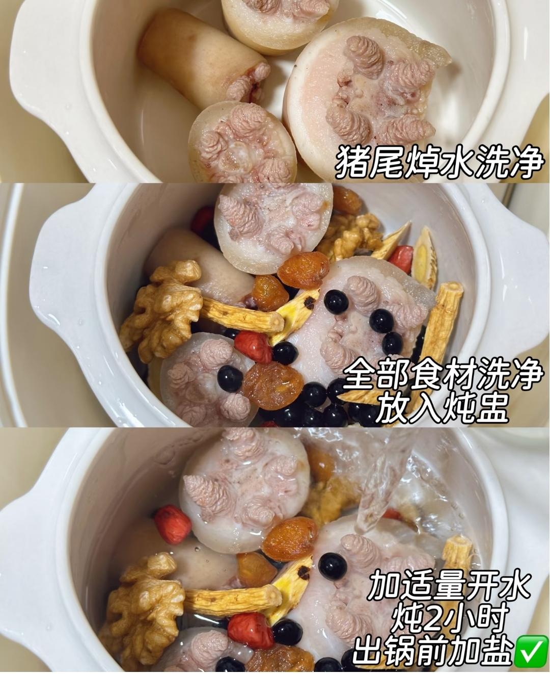 经常气血不足,腰酸背痛的友友们,都去给我喝这碗汤,别看它食材常见,做法简单,但却大有营养,连喝一周整个人气色都变了 [彩虹]食材:猪尾巴,黑豆等 [鼓掌]做法:猪尾巴处理后清洗干净切块,加入其他食材,放入锅中炖两个小时左右,出锅前加入适量盐即可 治嗓子妙招