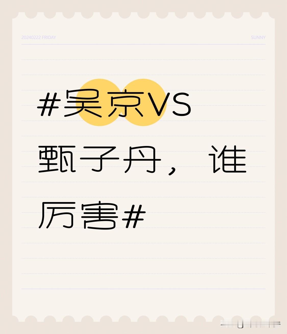 吴京和甄子丹谁更厉害,这话题一直很有争议。有人说吴京是连届武术冠军,从一场场比赛中打出来,成绩仅次于李连杰,而甄子丹没参加过正规比赛,这么看吴京实战可能更强。而且吴京身高占优,体力和力量上或许更胜一筹。 不过,他俩在《杀破狼》里那场短刀对甩棍的巷战打斗,堪称格斗界的天花板,打得干净利落。这里面很难看出谁更厉害,只能说都把角色的打斗风采展现得淋漓尽致。其实他俩都是优秀的武打演员,各有风格和优势,没必要非得争个高下。