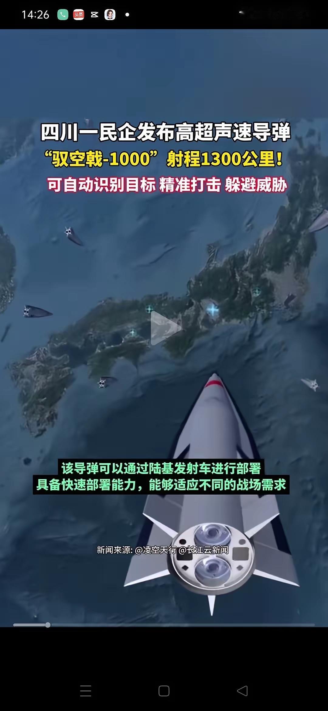 这个爆炸新闻颠覆了全世界,能把日本吓死!中国民企“凌空天行”宣布,自主研发的高超音速导弹“驭空戟-1000”已正式定型并进入批量生产阶段,成本是此类导弹的十分之一(白菜价),最大射程1300公里,有极强的抗电子干扰能力,能够躲避现有防空系统拦截。这可颠覆了军事专家的认知,美日害怕了,惹谁都别惹中国。 ​​​​​​​​这又便宜又好用又恐怖的导弹,因为是民企生产,国家可以放松对几个地区的出口。出口给委内瑞拉,美国航空母舰作废;出口给朝鲜,日本韩国难受;出口给也门胡塞武装,以色列恐怖;我们自己用,全世界邪恶势力瓦解。 1300公里的射程,刚好覆盖第一岛链核心区域,从我国沿海发射,可精准触及西太平洋关键海域。 “白菜价”的成本优势背后,是中国民企在新材料、智能制造领域的突破,打破了军工产品高溢价的传统格局。 美国“战斧”巡航导弹单枚成本超150万美元,而“驭空戟-1000”仅需其十分之一,批量列装门槛大幅降低。 高超音速武器的核心难点在于乘波体设计,“驭空戟-1000”实现5马赫以上突防,现有宙斯盾系统拦截成功率不足5%。 抗电子干扰能力源于我国自主研发的量子导航模块,即便遭遇强电磁压制,仍能精准锁定目标。 中国民企入局军工领域,是国家“军民融合”战略的硕果,目前已有超3000家民企获得军工配套资质。 日本斥资千亿打造的“爱国者-3”防空系统,针对传统导弹设计,面对高超音速突防完全束手无策。 美国海军第七舰队的航母战斗群,依赖舰载机和宙斯盾防御,在低成本高超音速导弹面前防御成本陡增。 国际军控数据显示,全球具备高超音速导弹量产能力的国家仅3个,中国民企的突破让格局再添变数。 “驭空戟-1000”的量产,意味着我国在区域拒止能力上再添利器,进一步巩固周边安全环境。 所谓“民企生产即可放松出口”的说法并不准确,我国对军品出口有严格管制,坚守负责任大国底线。 军品出口需遵循联合国安理会决议和国际惯例,中国从未向冲突地区随意输出武器,始终维护和平稳定。 这款导弹的意义,更在于彰显中国制造业的全面升级,从民用技术到军工领域实现无缝衔接。 俄罗斯“匕首”高超音速导弹虽早服役,但成本高昂且产量有限,“驭空戟-1000”的性价比优势无可比拟。 美日媒体密集报道此事,渲染“威胁论”,实则暴露其对中国军工快速发展的焦虑与无力。 中国发展国防力量,始终是为了自卫,“驭空戟-1000”的出现,是对霸权主义威慑的正当回应。 民企参与军工研发,让国防创新更具活力,多元化的技术路径让我国军工体系更具韧性。 10倍成本优势意味着可大规模列装,形成“蜂群效应”,这是传统军事强国难以企及的战略优势。 抗电子干扰+高超音速突防,双重buff让“驭空戟-1000”成为现有防空系统的“克星”,技术代差十分明显。 中国始终坚持防御性国防政策,这款导弹的存在,是为了遏制侵略扩张,守护和平发展环境。 周边国家应看清局势,放弃挑衅试探,中国有决心也有能力捍卫国家主权和领土完整。 “驭空戟-1000”的诞生,是中国科技自立自强的缩影,从航天到军工,民企正成为重要力量。 那些妄图遏制中国发展的势力,终将被时代浪潮抛弃,中国的崛起之路无人能挡。 军事专家普遍认可,低成本高超音速武器的量产,将重塑区域安全格局,让和平更有保障。 中国从不主动惹事,但也绝不怕事,“驭空戟-1000”的存在,就是对各类挑衅行为的有力震慑。导弹科技进展 超音速导弹 导弹飞行 麻烦看官老爷们右上角点击一下“关注”,既方便您进行讨论和分享,又能给您带来不一样的参与感,感谢您的支持! 各位读者你们怎么看?欢迎在评论区讨论。