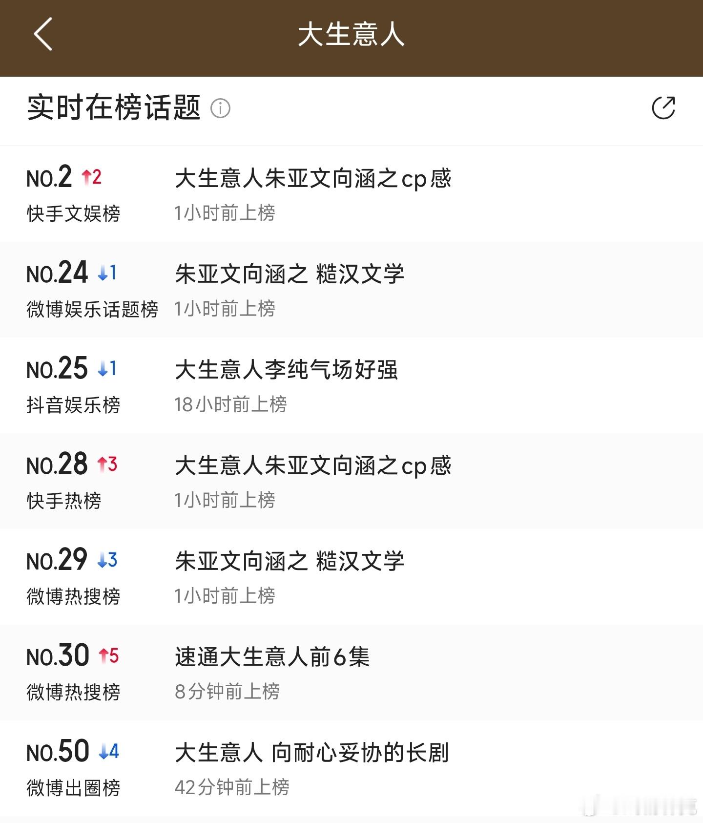 速通大生意人前6集大生意人目前百指走势也挺差,和扑开爬走的热度和云合没什么背离。这种题材的剧cp只能是小配菜,何况是配角的cp。主体剧情吸引不到人了吗?只能大力炒这个了朱亚文向涵之 糙汉文学