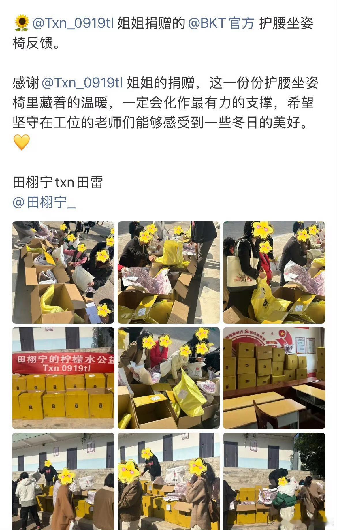 田栩宁粉丝公益活动,给在工位上的老师们捐赠了护腰坐垫,好有心,粉随正主了,一起传