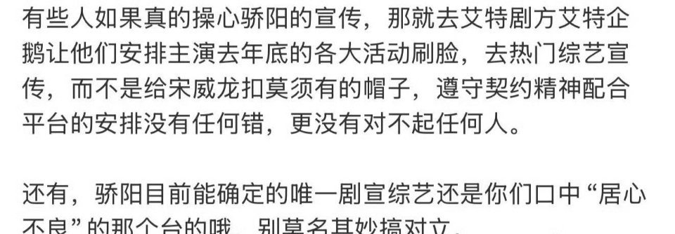 宋威龙粉丝又改变口风,说支持团队的各种剧宣安排了之前粉丝反对和张婧仪上芒果跨年,说骄阳似我要播了