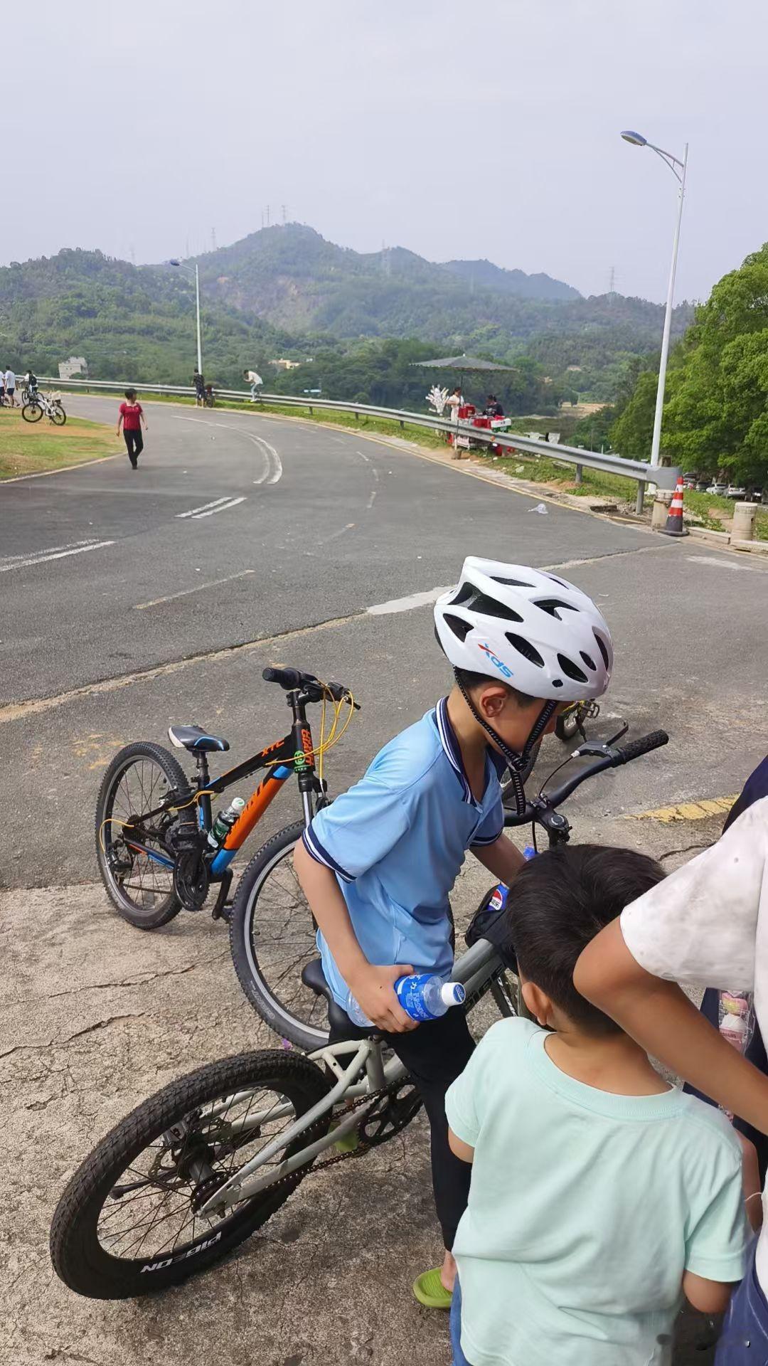 今天这天气太舒服了,不冷不热还没太阳,拽着娃出来骑单车,果然没选错地儿! 这路宽得能撒欢,远处山裹着层绿雾,风一吹都带着草味儿。 娃刚学会骑车,套着头盔攥着车把,那小身板绷得跟小树苗似的,骑两步就扭头喊“妈你看我!”,脑门上汗珠子都挂着笑。 旁边几个小朋友凑一块儿扒拉车筐,不知谁掏出包饼干,瞬间围成个小圈。 风裹着他们的笑往耳朵里钻,连路边的路灯都好像弯着腰听热闹——这才是周末该有的样子嘛,浑身都松快。