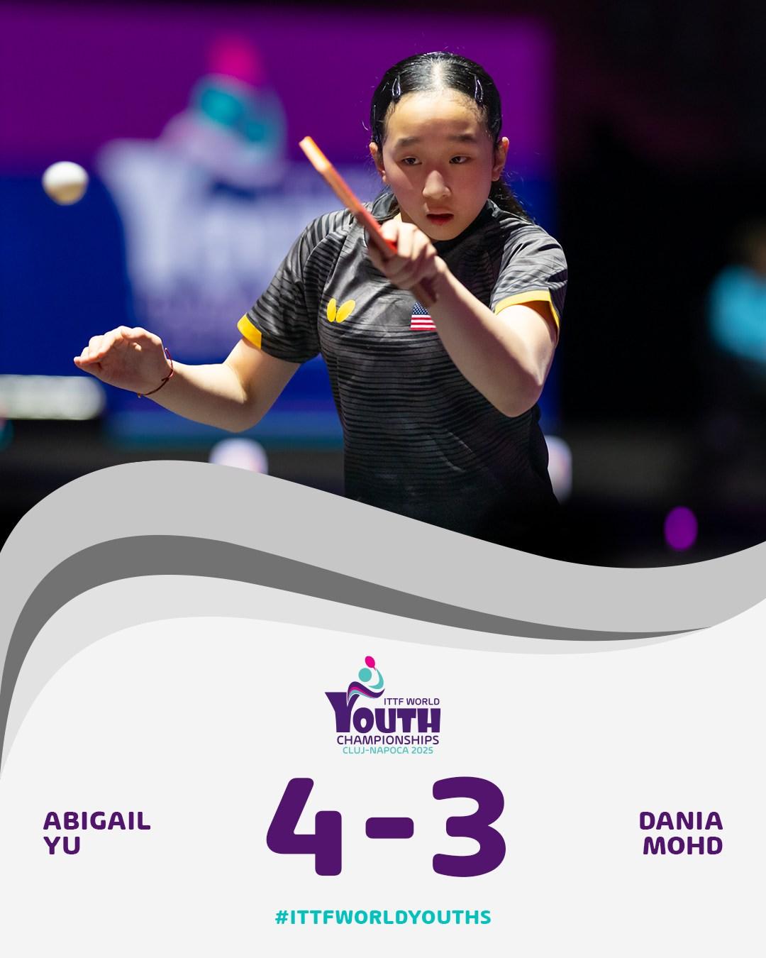 WTTins报道。在ITTF世界青年锦标赛2025中,余艾比上演惊天逆转,从0-3落后的绝境中连扳四局,最终以4-3的比分获胜。#ITTF#ITTFWorld#ITTFWorldYouths