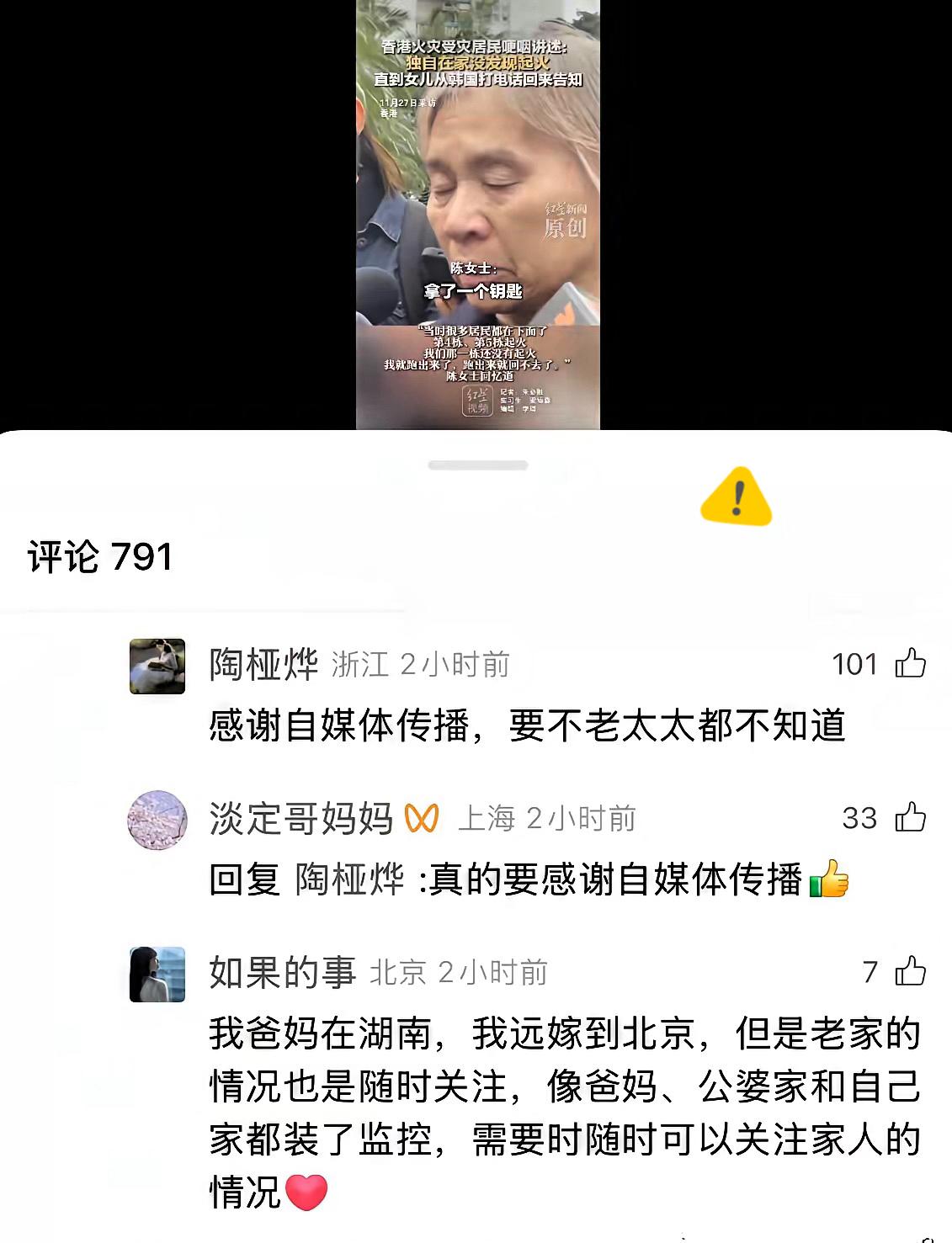 香港这次的火灾,有一位幸存下来的老太太很特殊 不是因为她多有钱,也不是因为她是某某高层 而是因为她这次获救,竟是被远在韩国的女儿给救下来的,远在韩国的女儿跟妈妈通电话,突然急着让她去看楼下是不是起火了,老太太二话不说冲下楼,直接躲过一劫。 要是没有女儿隔着时差盯着这些信息,后果真不敢想。总有人吐槽自媒体太吵、信息太杂,可这次真的被打脸了,它不是只会制造焦虑,关键时刻还能当“救命信号器”。 科技和传播从来都不是非黑即白,自媒体的快,在这一刻变成了最实在的温度。你觉得自媒体还有哪些被忽略的正面作用?香港大埔火情对当地经济有何影响 香港大埔火情对居民生活有何影响