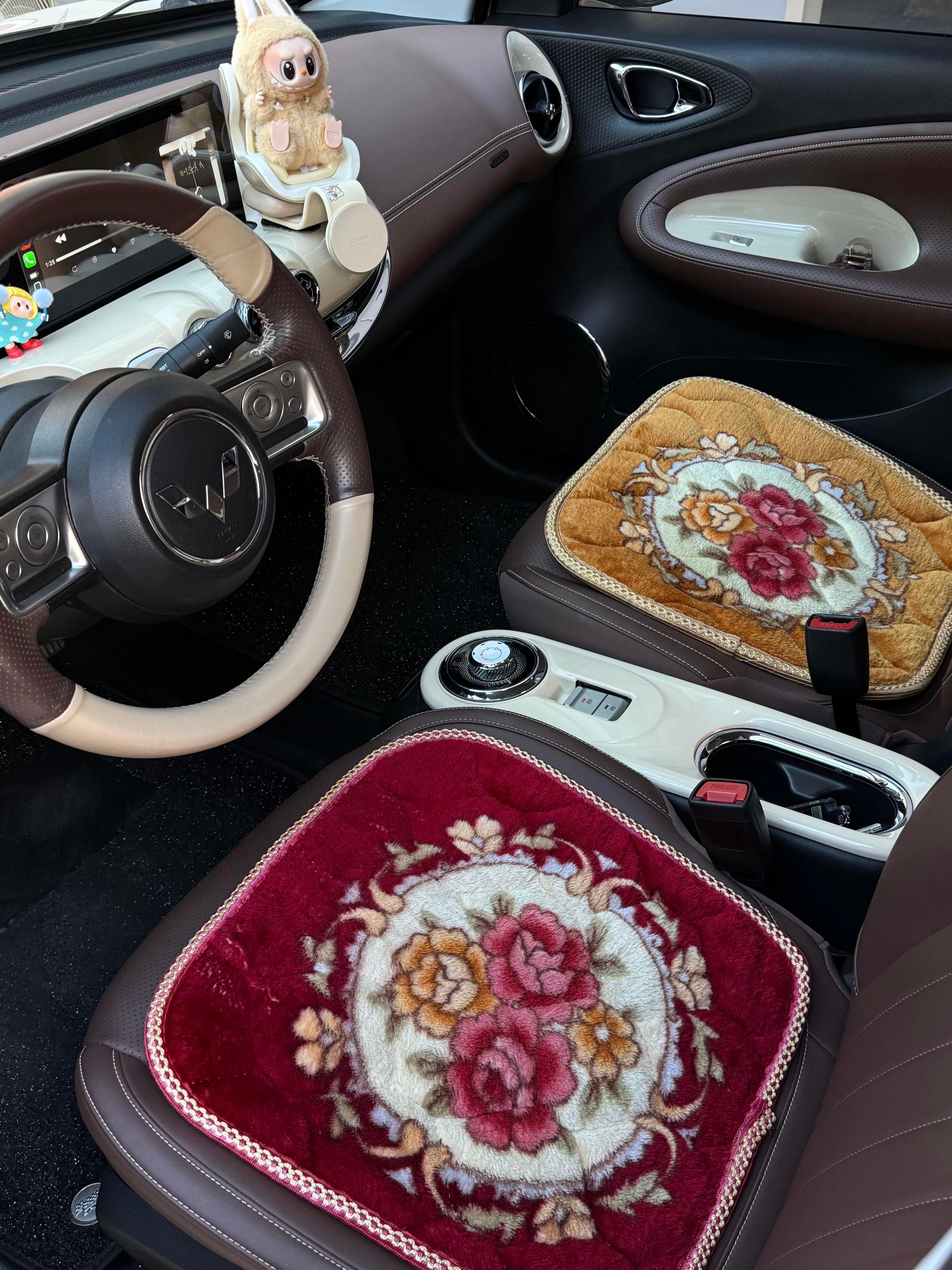 汽车没有座椅加热的,赶紧安排上“花开富贵”坐垫,又实用又洋气