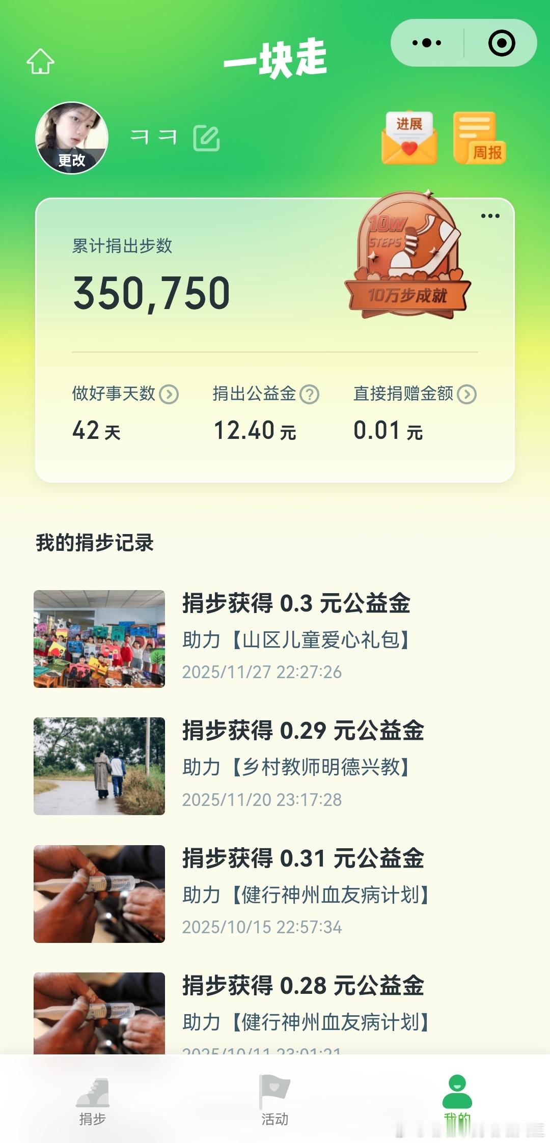 每天 登微信想起来就去捐步 虽然不知道有没有用