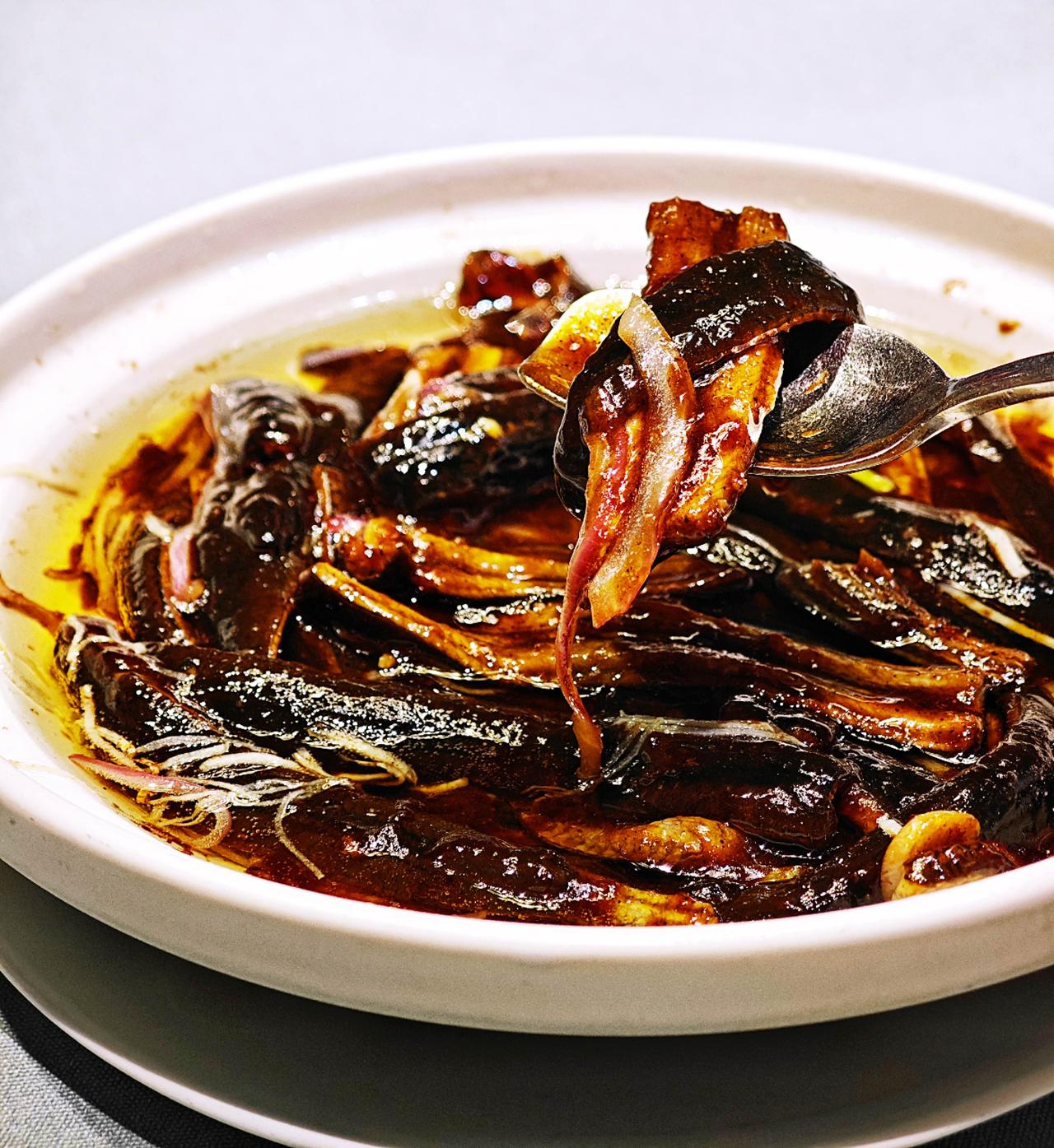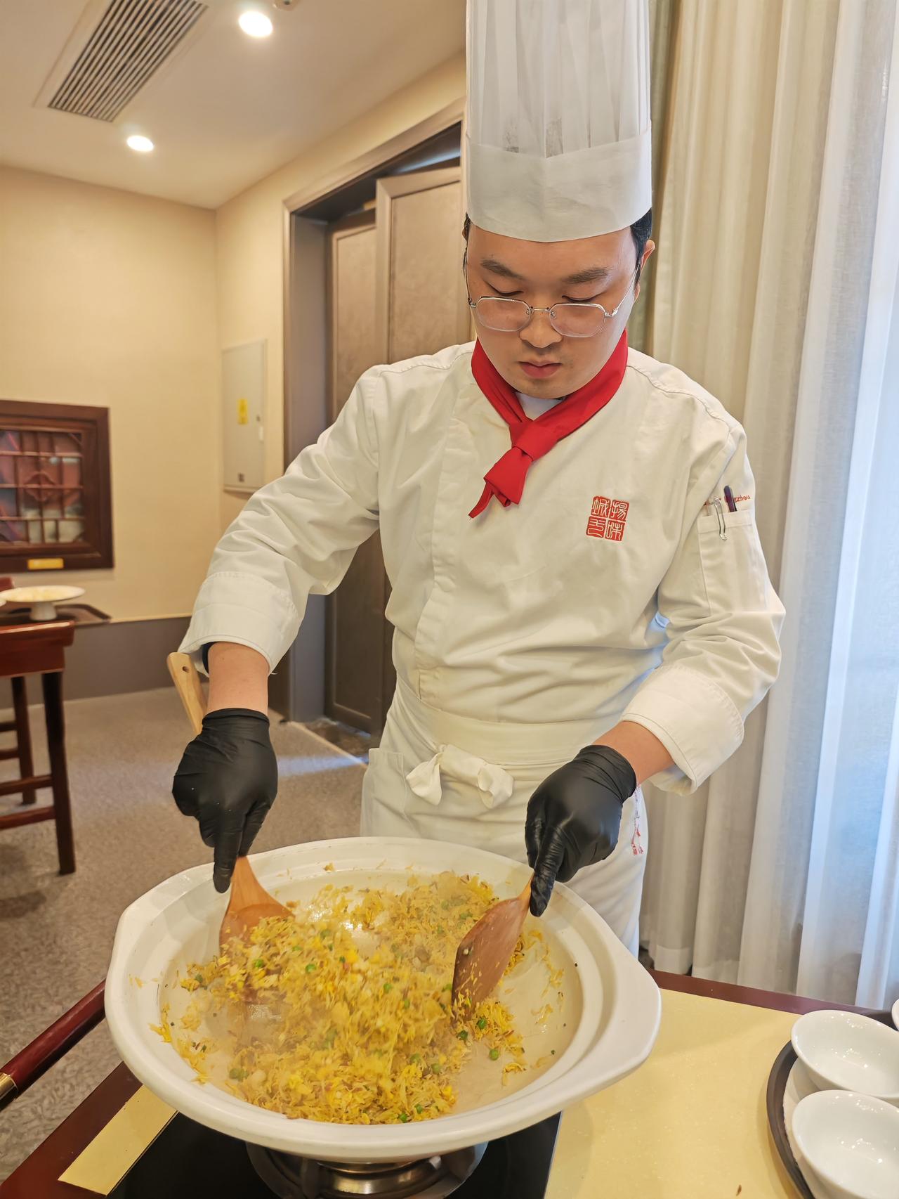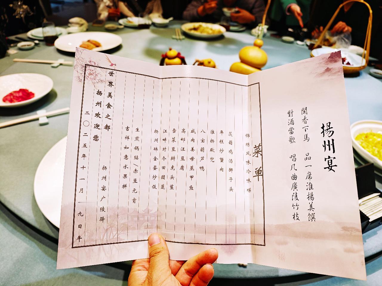 作为黑珍珠二钻+米其林入选的淮扬菜顶流扬州宴,也是《十二道锋味》拍摄地,从进门到收尾都被狠狠拿捏住了! 🦢开席:卤鹅头+醉蟹 老卤浸润的鹅头胶质满满,咬下去满口爆汁;醉蟹蟹黄凝脂、蟹肉白玉,花雕酒香不抢味,鲜到跺脚!冷热双拼直接打开味蕾~ ✂️刀功封神:烫干丝 1cm豆干片24层再切细丝,细到能穿针!用高汤烫制,软韧嫩滑,虾籽提鲜,这才是淮扬菜的基本功啊~ 🍲功夫大菜合集: ▪️八宝葫芦鸭:整鸭脱骨!馅料糯香混合鸭肉汁水,切开瞬间香气扑鼻 ▪️淮扬软兜:热油激姜丝那声“刺啦”太勾魂,鳝鱼肉嫩到抿化 ▪️清炖狮子头:入口即化,鸡汤底鲜到掉眉毛 🍚压轴名场面:堂做扬州炒饭 厨师当场颠勺18铲,米饭颗颗分明裹着蛋香、料香,海参+虾仁+火腿的豪华配置,香到舔盘!扬州身边事 最后用陈皮红豆小汤圆收尾,温润解腻,整场宴席风雅又满足~淮扬菜名店