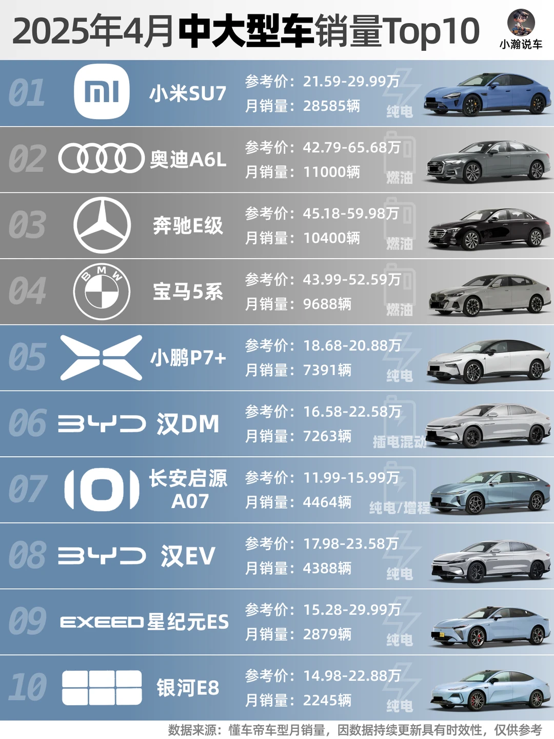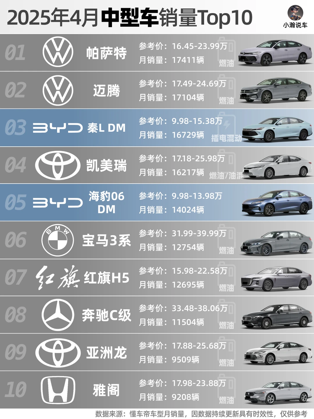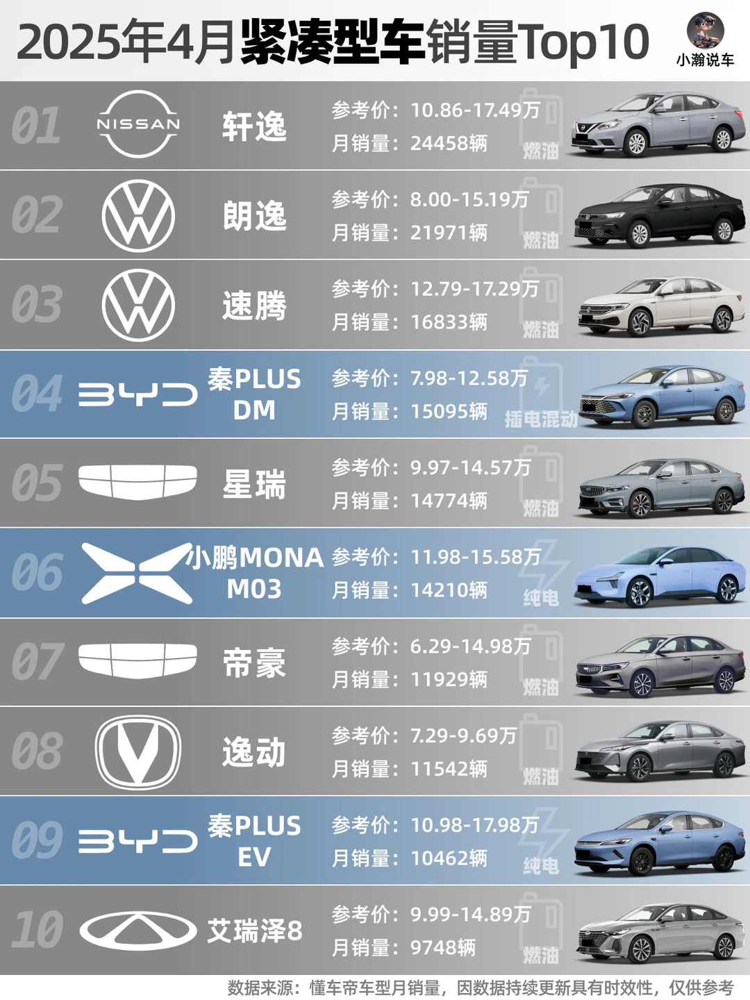 4月轿车榜:油电之争激烈,比亚迪吉利互卷