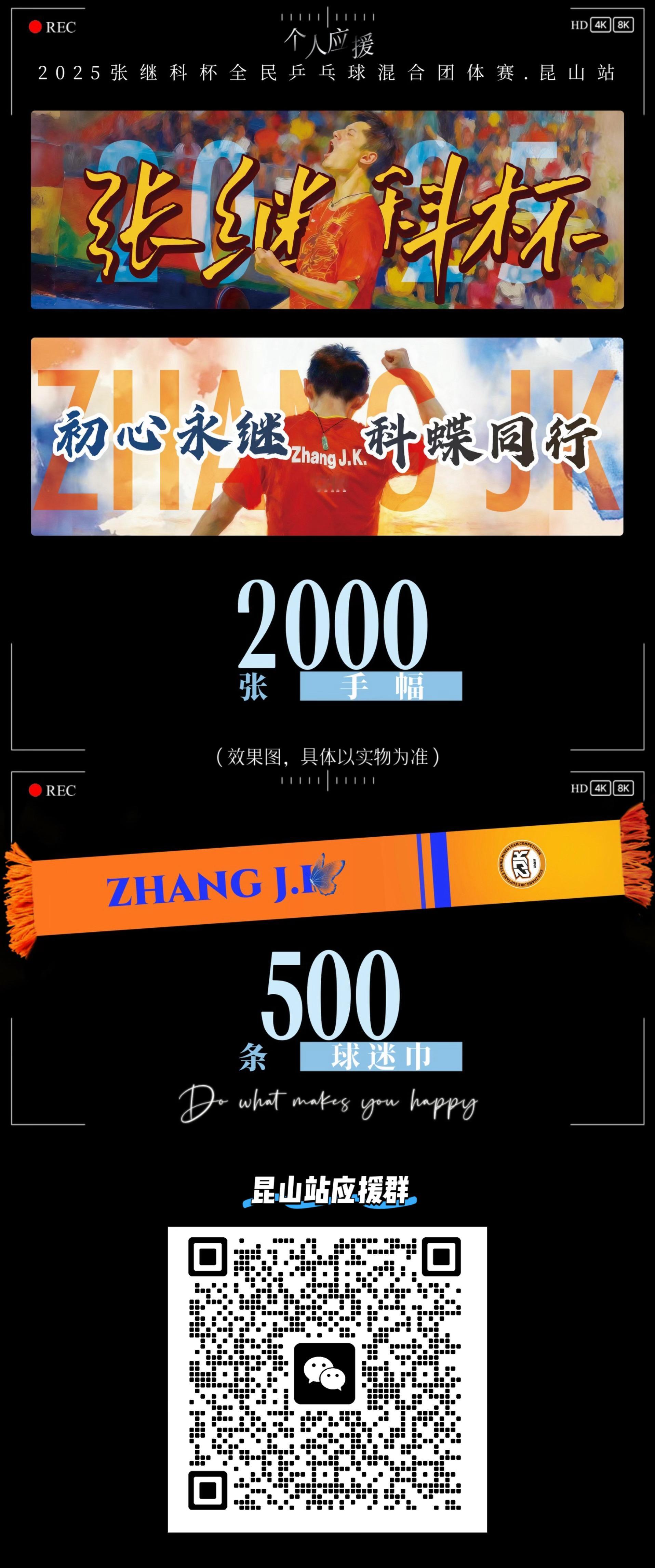 张继科 2025年张继科杯全民乒乓球混合团体赛·昆山站:2000张手幅+500条球迷巾应援❗张继科杯混团赛来了 领取方式:优先发放昆山群成员,随机掉落开(闭)幕式特定座位区域。配置见图,最终以实物为准。应援来自:&