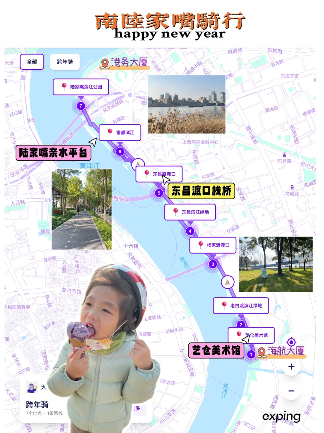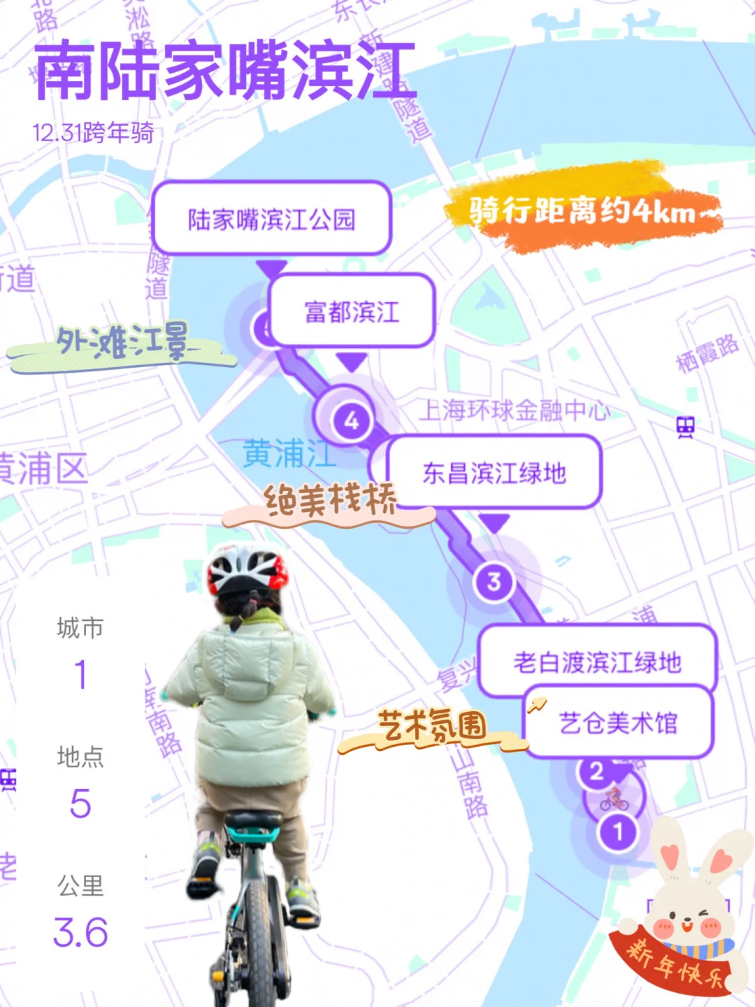 🚲路线(图5):老白渡滨江-杨家渡渡口-东昌滨江-东昌路渡口-富都滨江(南陆家嘴滨江)