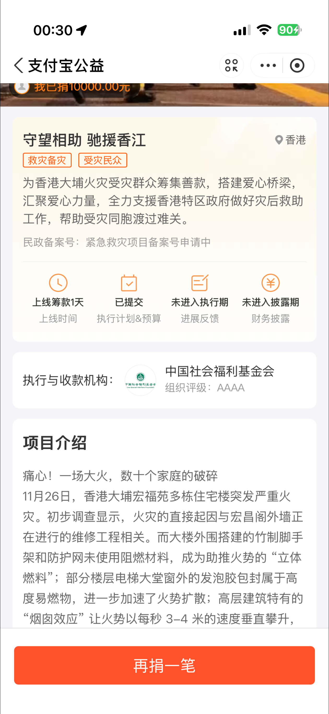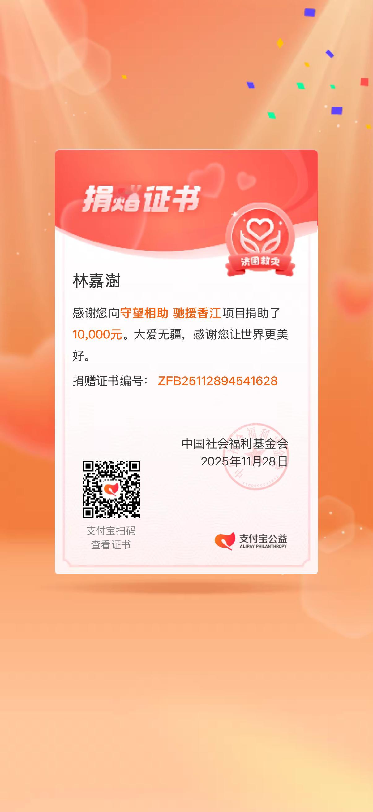 很多年前喜欢有空去香港转转,留下了很多美好的影像记忆。我小时候看电视,知道自然灾害的时候,香港同胞经常伸出援手。在香港有亲戚,这几天看火灾新闻,心里很难受。尽我们小家庭的微薄之力,半夜在zfb公益里捐了一些(公益入口在zfb里可以搜到)。虽然显得微不足道,也希望能多少帮到受灾的家庭吧。 香港小米基金会捐赠1000万港元