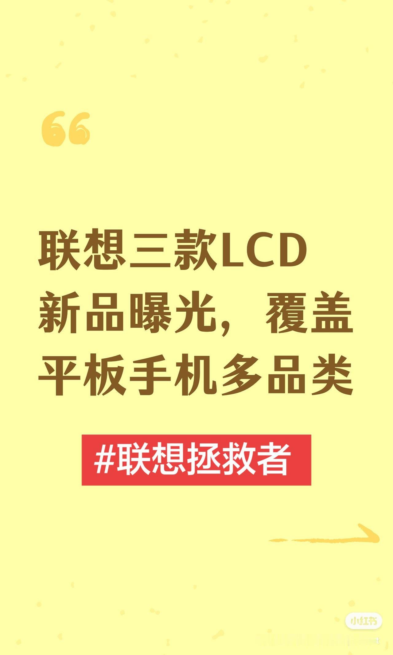 联想三款LCD新品曝光,覆盖平板手机多品类