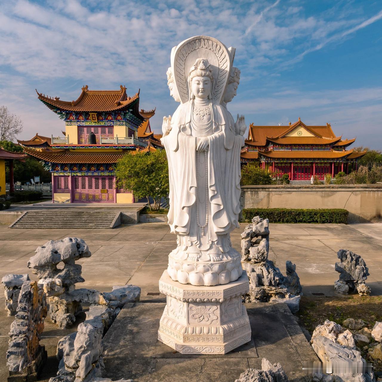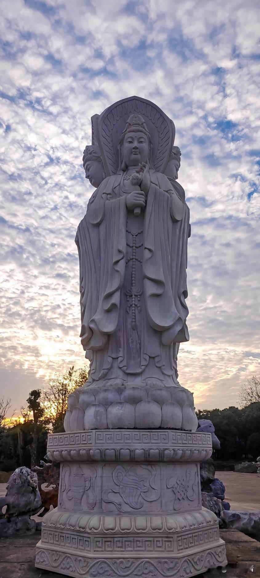 扬州仪征孔雀山有座地藏寺,踏入寺门,眼前呈现了一尊六米余高的汉白玉观音,巍峨耸立,宝相慈悲。钟楼、天王殿、鼓楼,一字排开,气象庄严。 从右侧假山间,过小桥,向前行,沿步道蜿蜒深入,只见庙宇恢宏,飞檐叠嶂,寂然伫立。小镇有如此规模的寺院,令人感到意外。 傍晚时分的大雄宝殿,佛光普照,大殿里传出和尚、居士、香客们的梵经诵音,与风掠过檐角的清脆铃响。