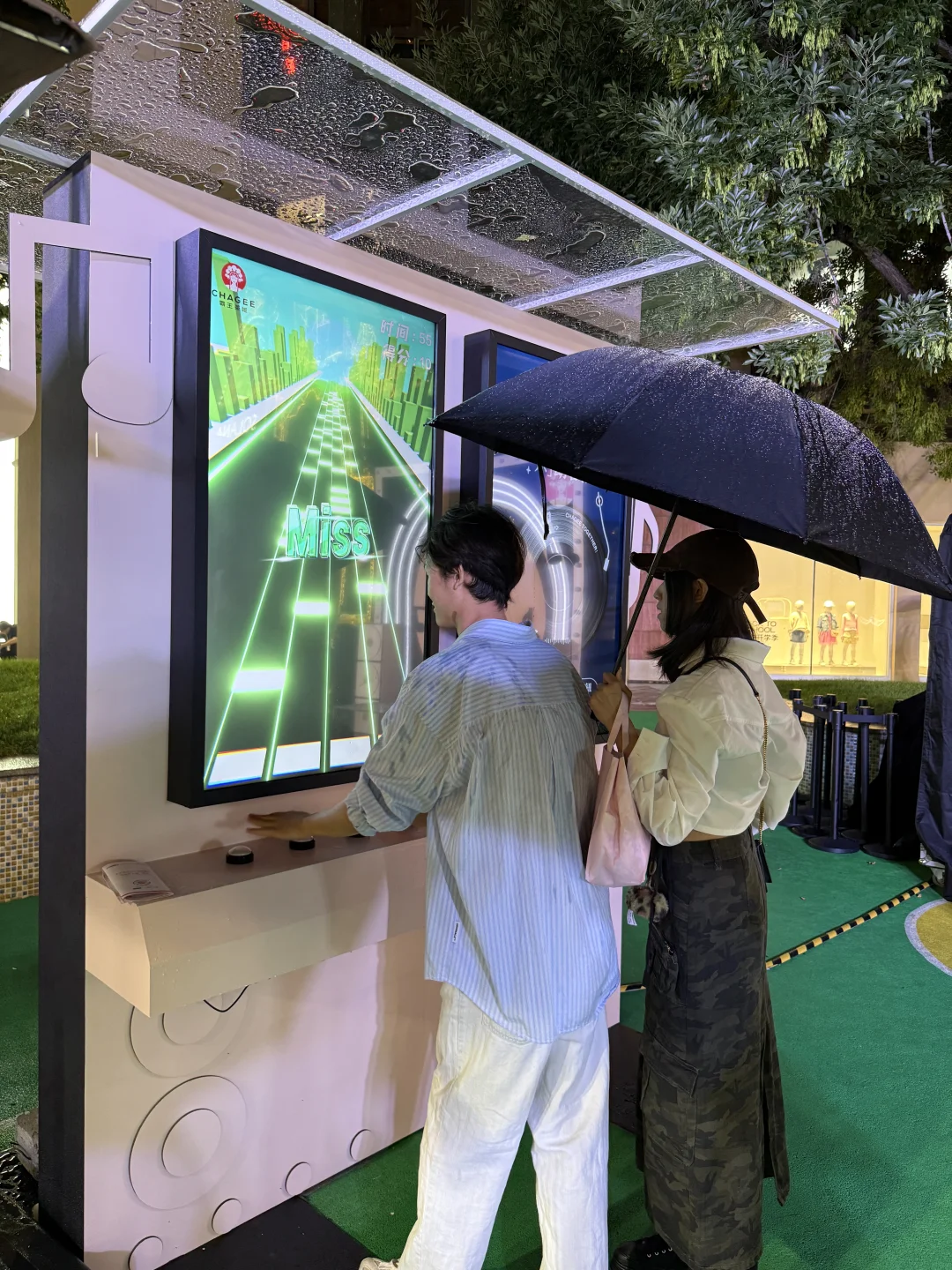 门店侧边快闪区设置了节奏大师互动游戏,免费玩!