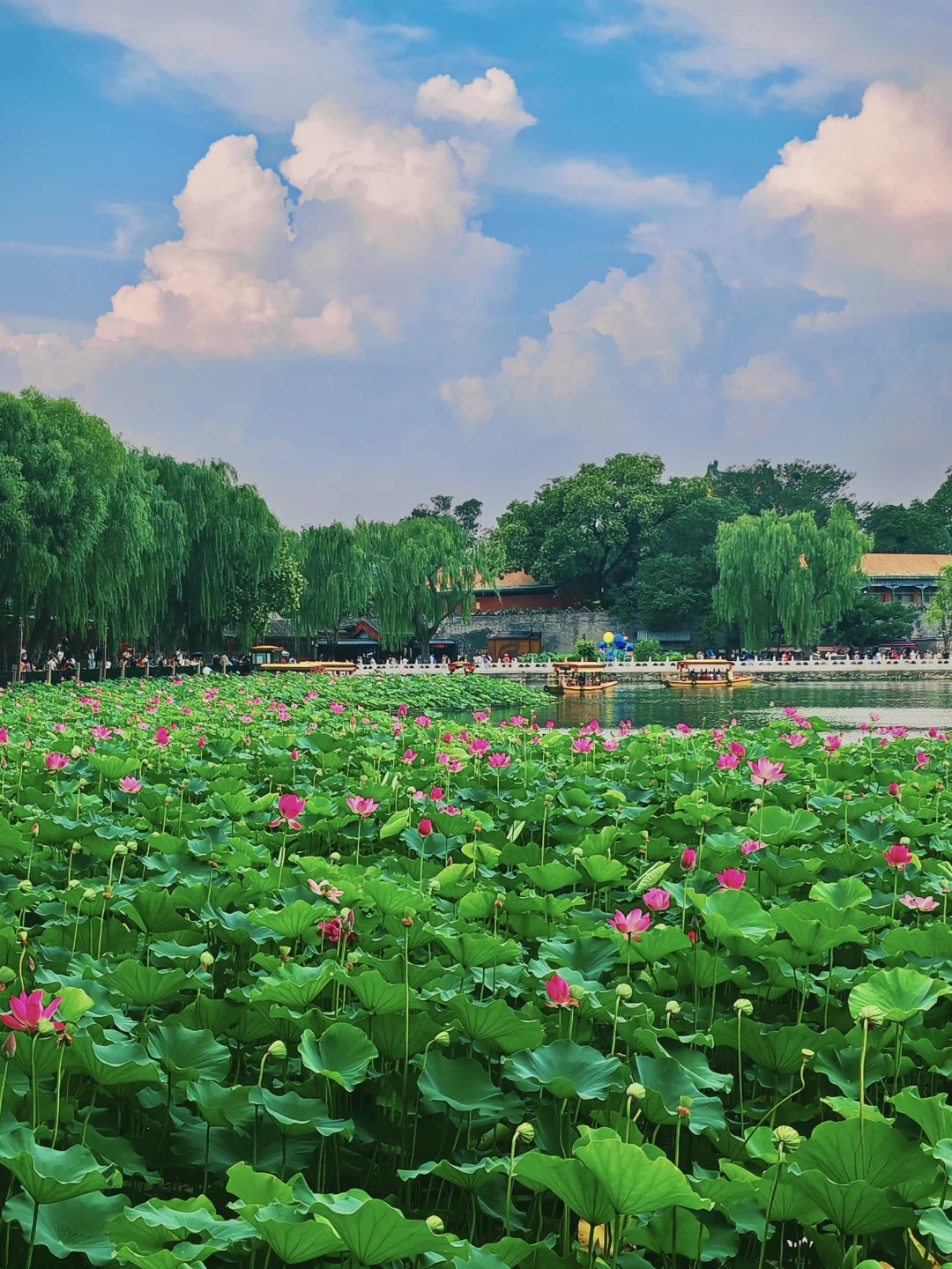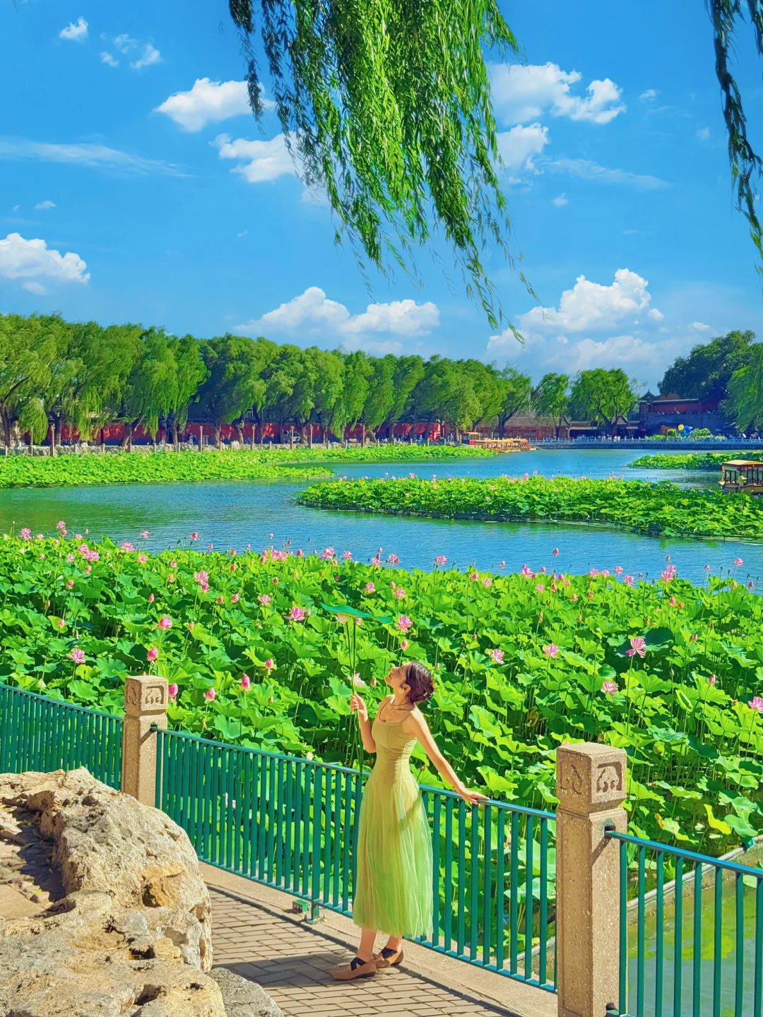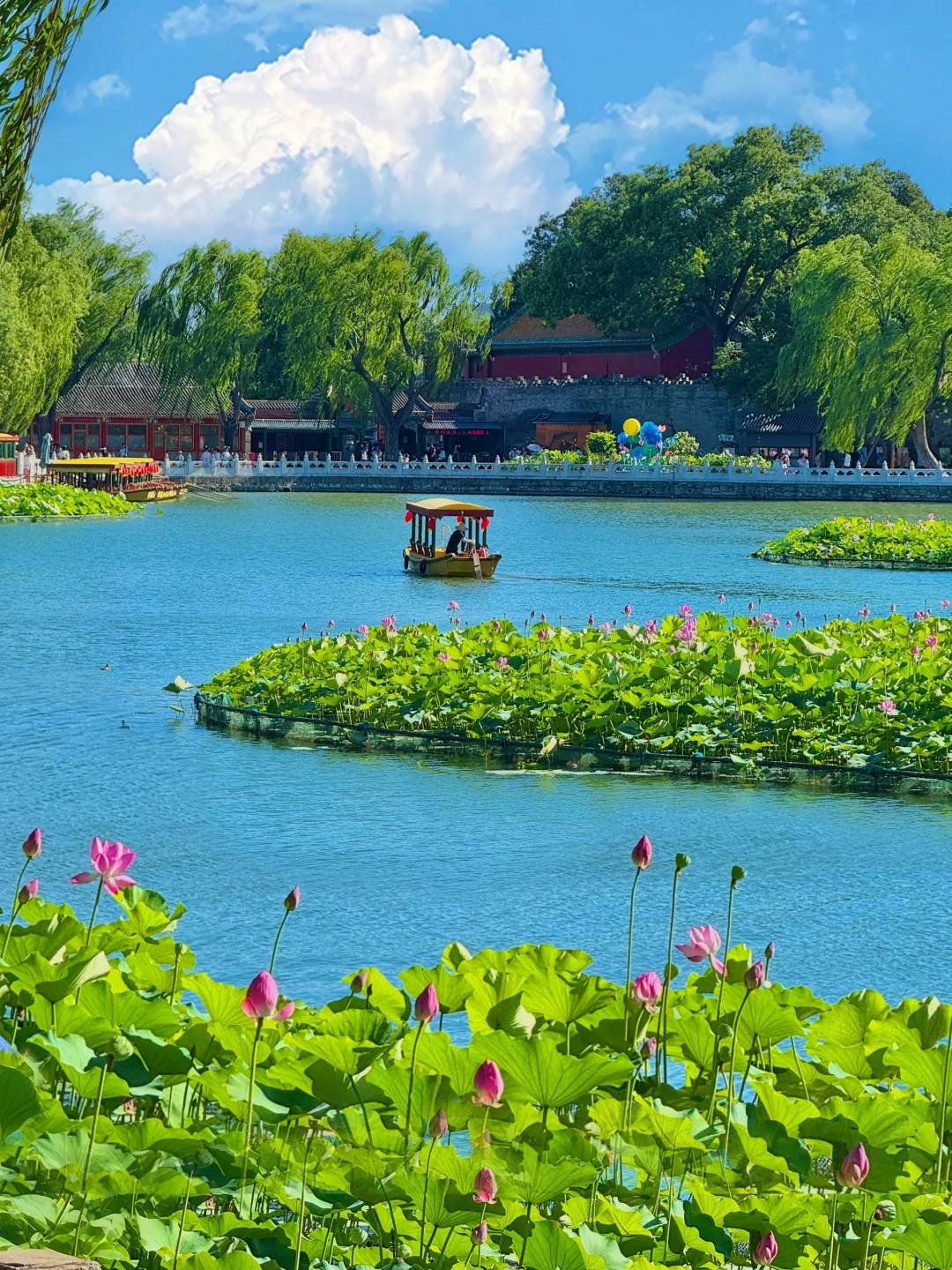 📍登上白搭,南门小海湖的"荷花映白塔"、俯瞰摇橹船⛵️全景也超级治愈🪷